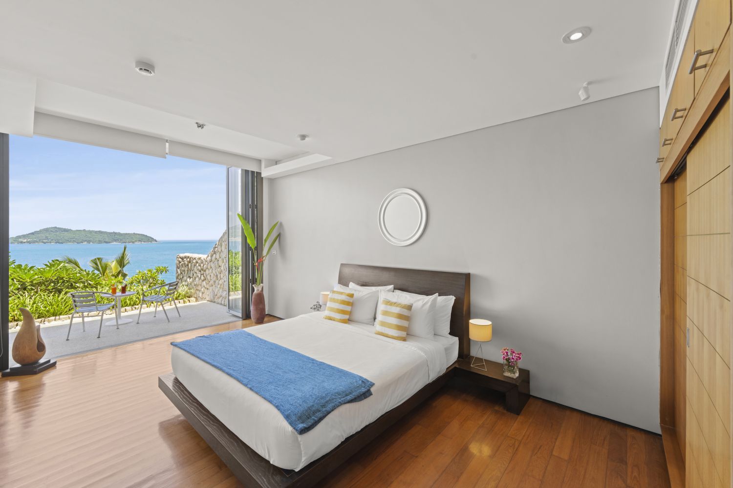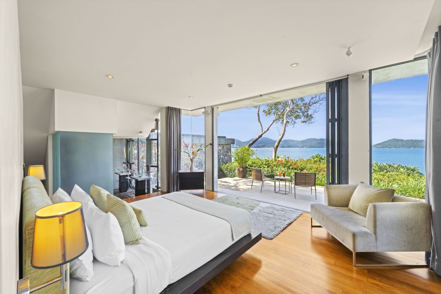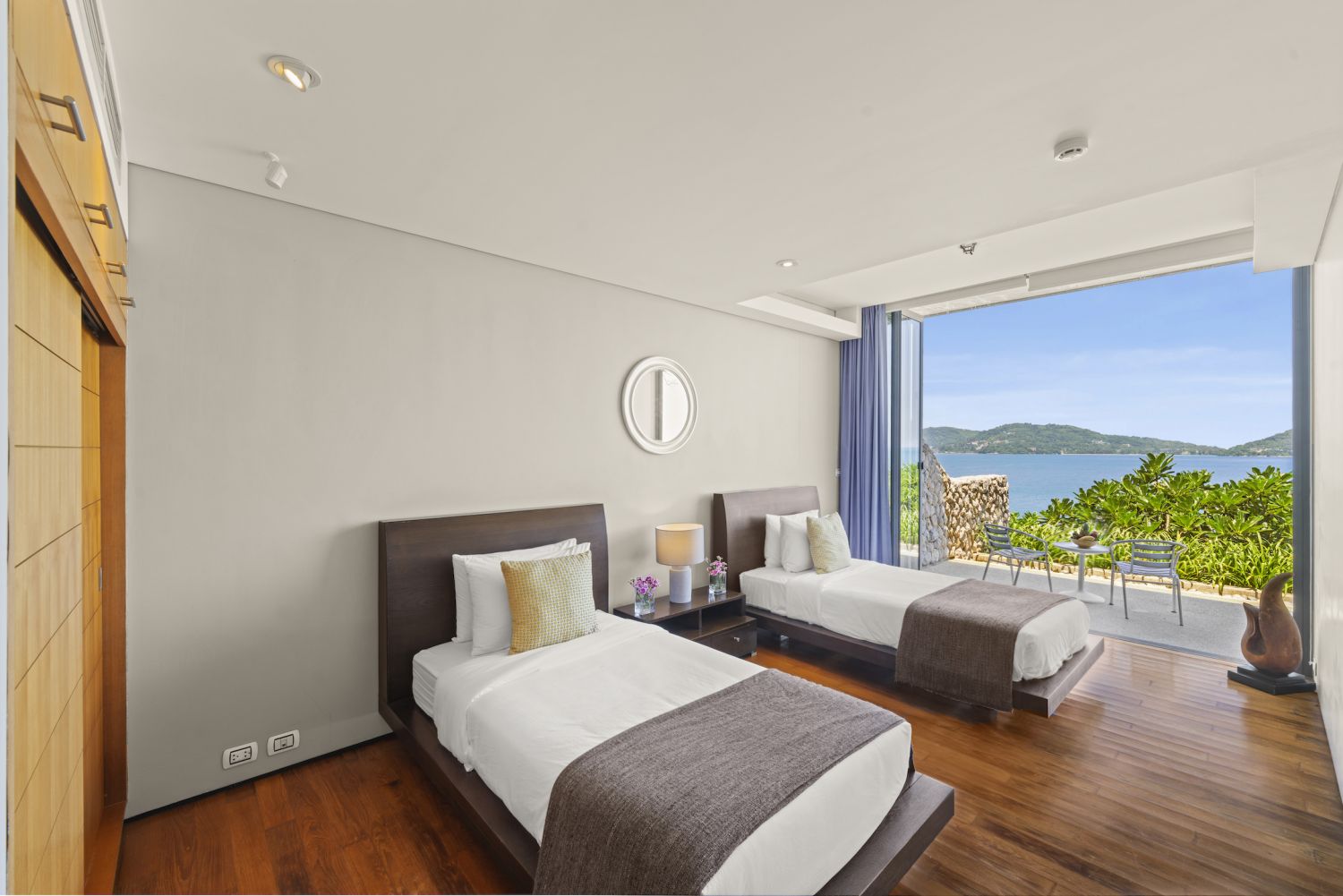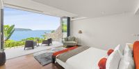 Четыре спальни с видом на море различной конфигурации, окруженные спокойствием, оснащены дополнительными удобствами, включая частные террасы и возможности для купания на открытом воздухе.
