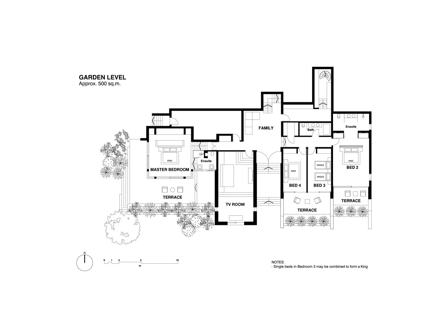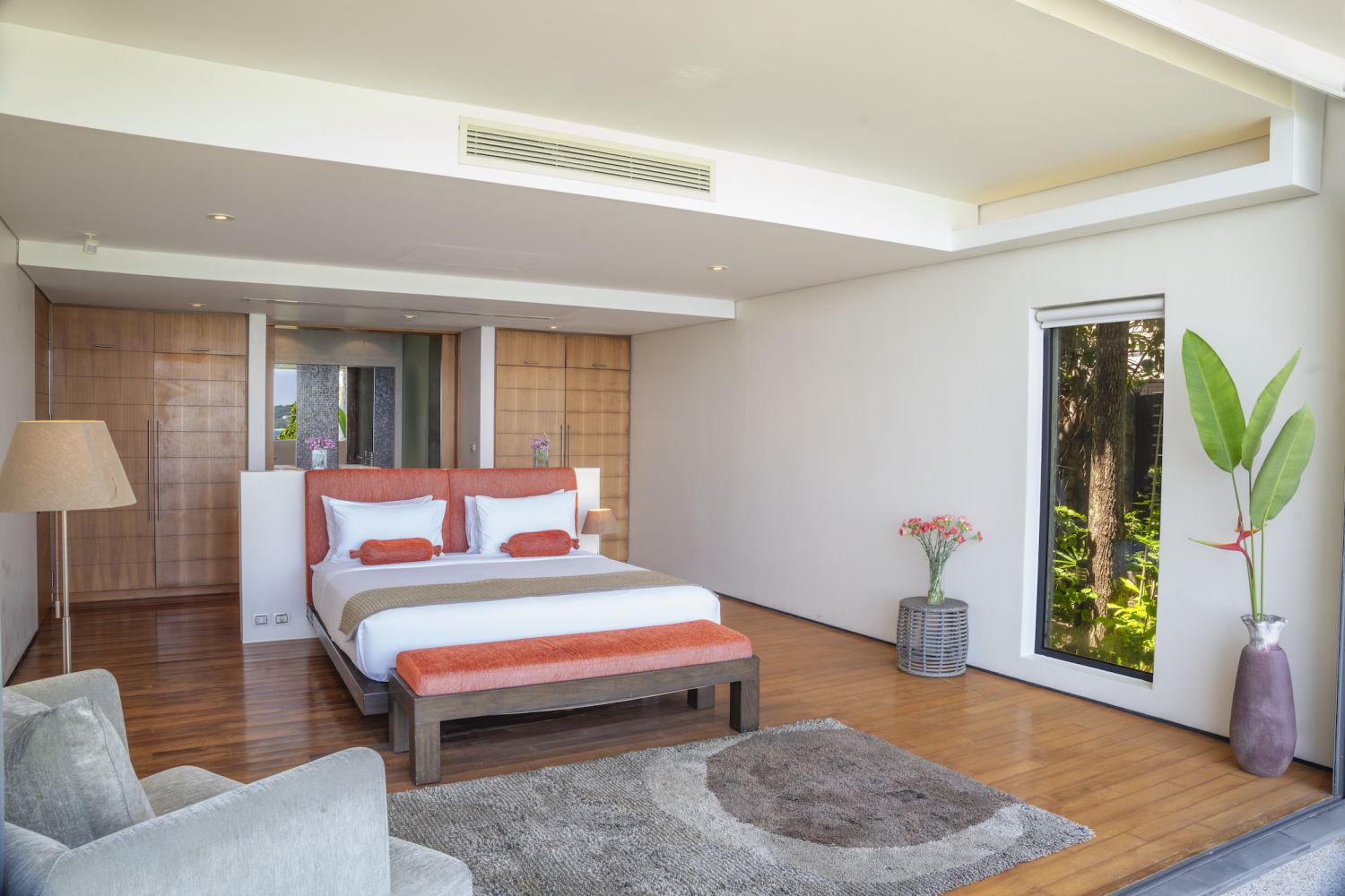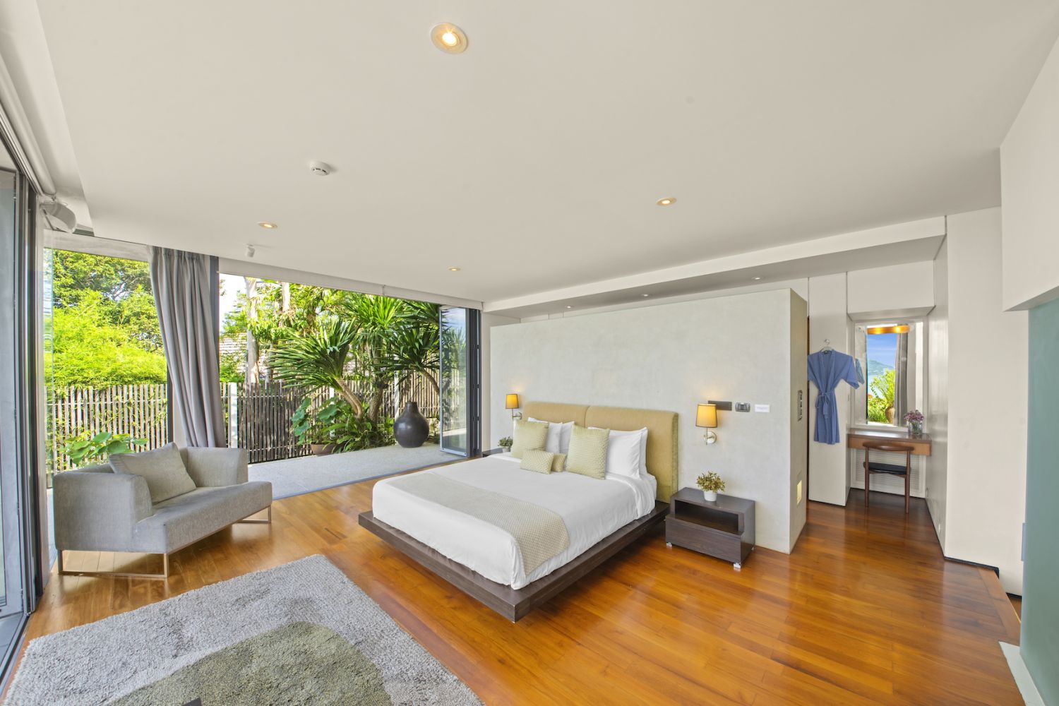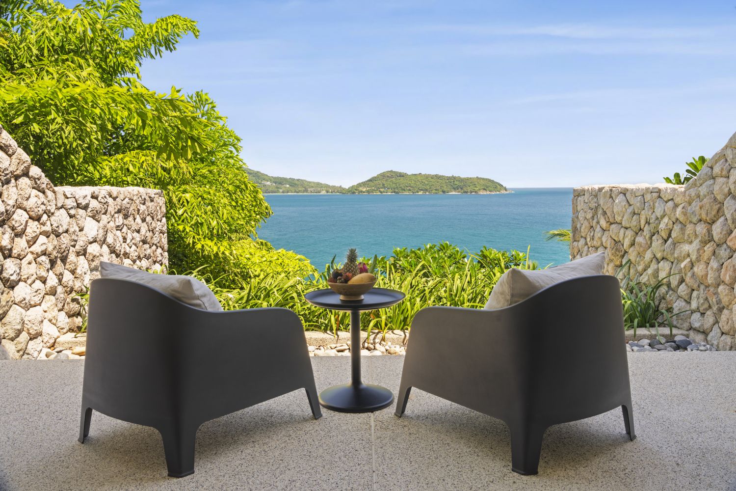 Четыре спальни с видом на море различной конфигурации, окруженные спокойствием, оснащены дополнительными удобствами, включая частные террасы и возможности для купания на открытом воздухе.