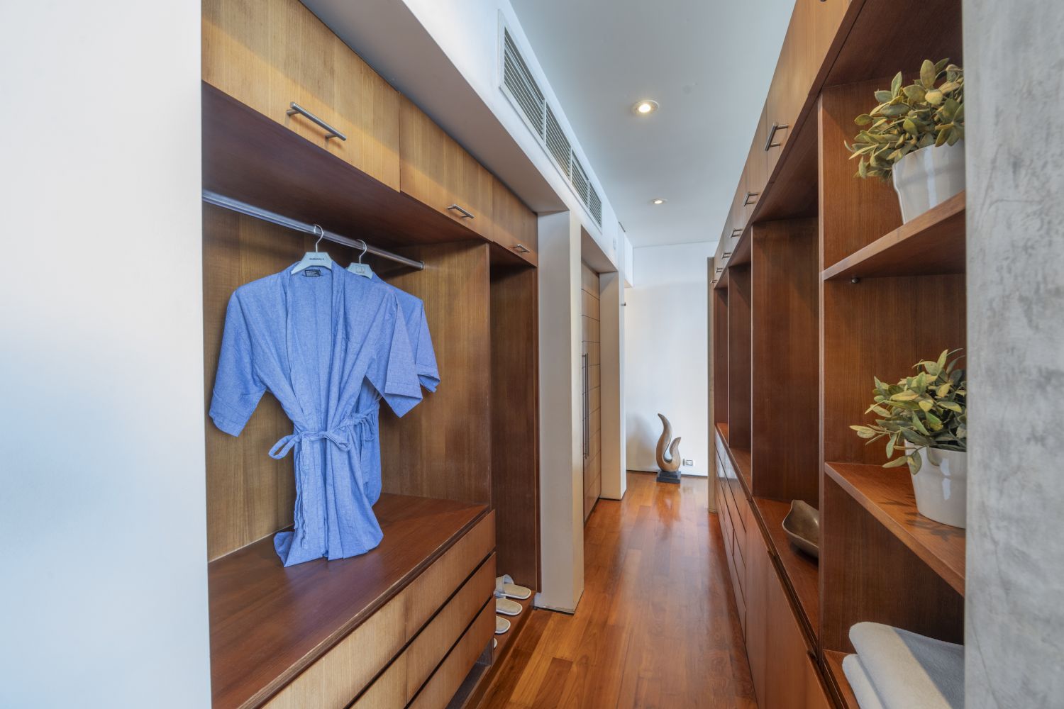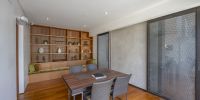 Эта зона образует главную крытую общую жилую зону виллы, окруженную стеклянными дверями, которые открываются на просторную террасу у бассейна.