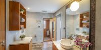 Современная мебель смягчается цветовой палитрой землистых тонов, сочетающейся с напольными панелями из светлого дерева, а избранные элементы декоративных изделий из дерева в азиатском стиле придают интерьеру органичный оттенок.