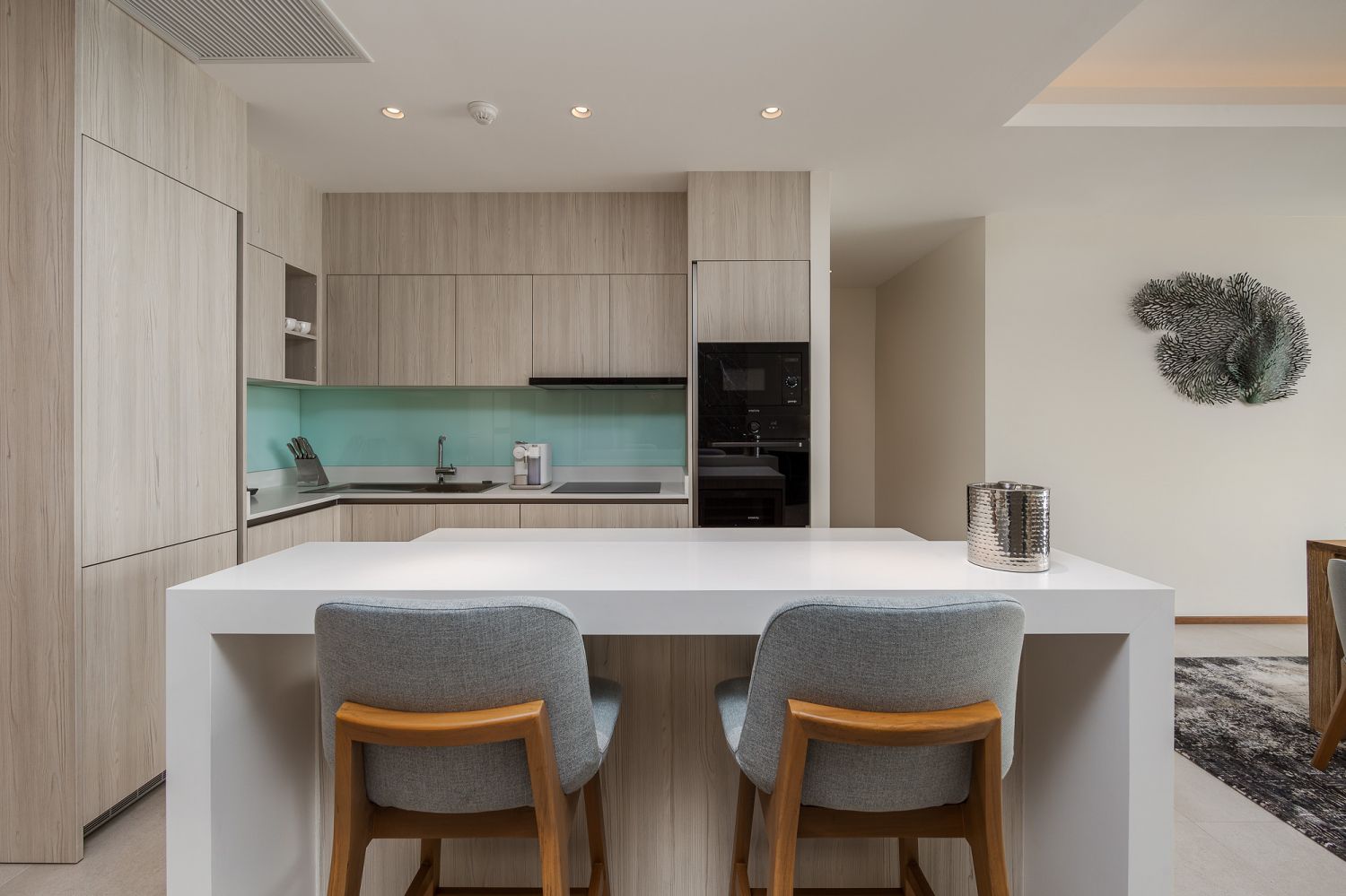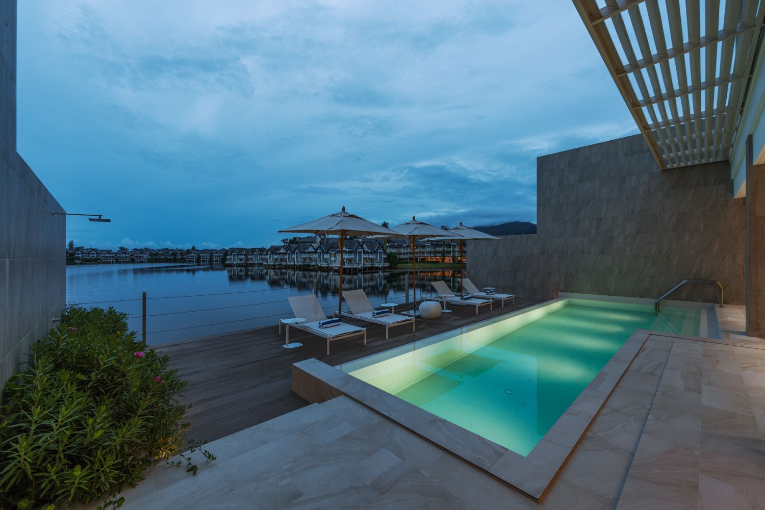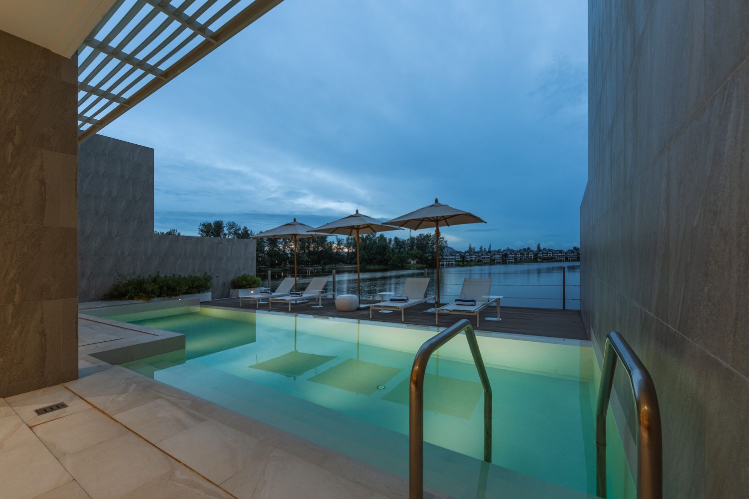 Апартаменты с собственным бассейном на берегу расположены на втором этаже комплекса.
