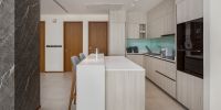 Кухня и обеденная зона в едином пространстве с гостиной представляют идеальное удобство для проживания и отдыха.