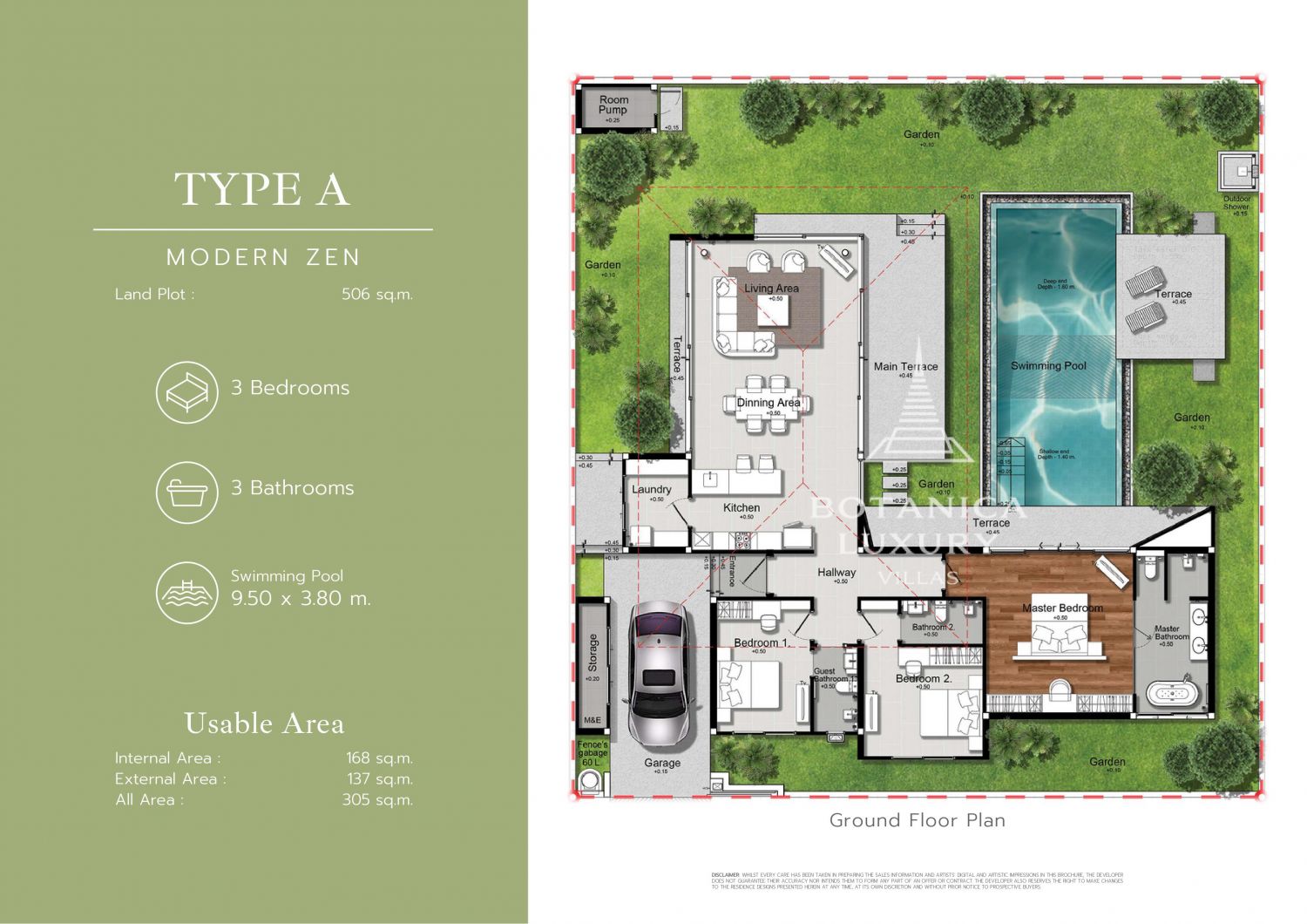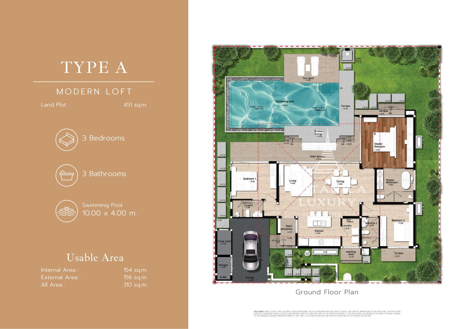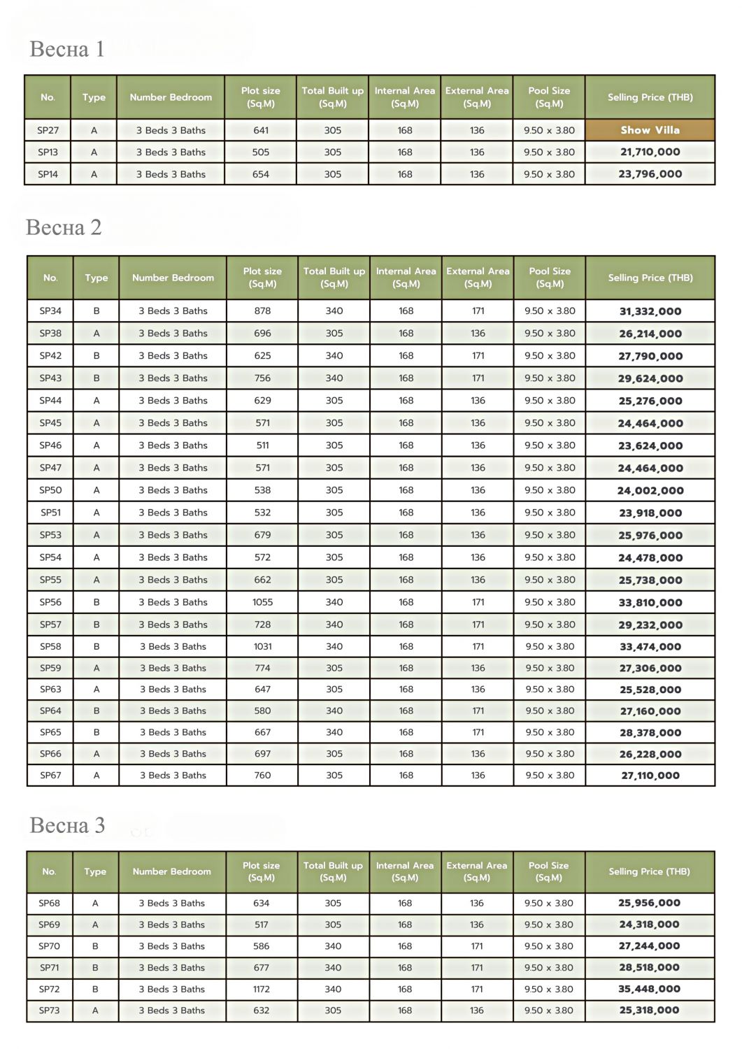 Эти замечательные одноэтажные виллы, доступные к покупке, распологают тремя спальнями и тремя санузлами, а на территории расположились бассейны с кристально чисто водой размером 9.5 х 3.8 м.