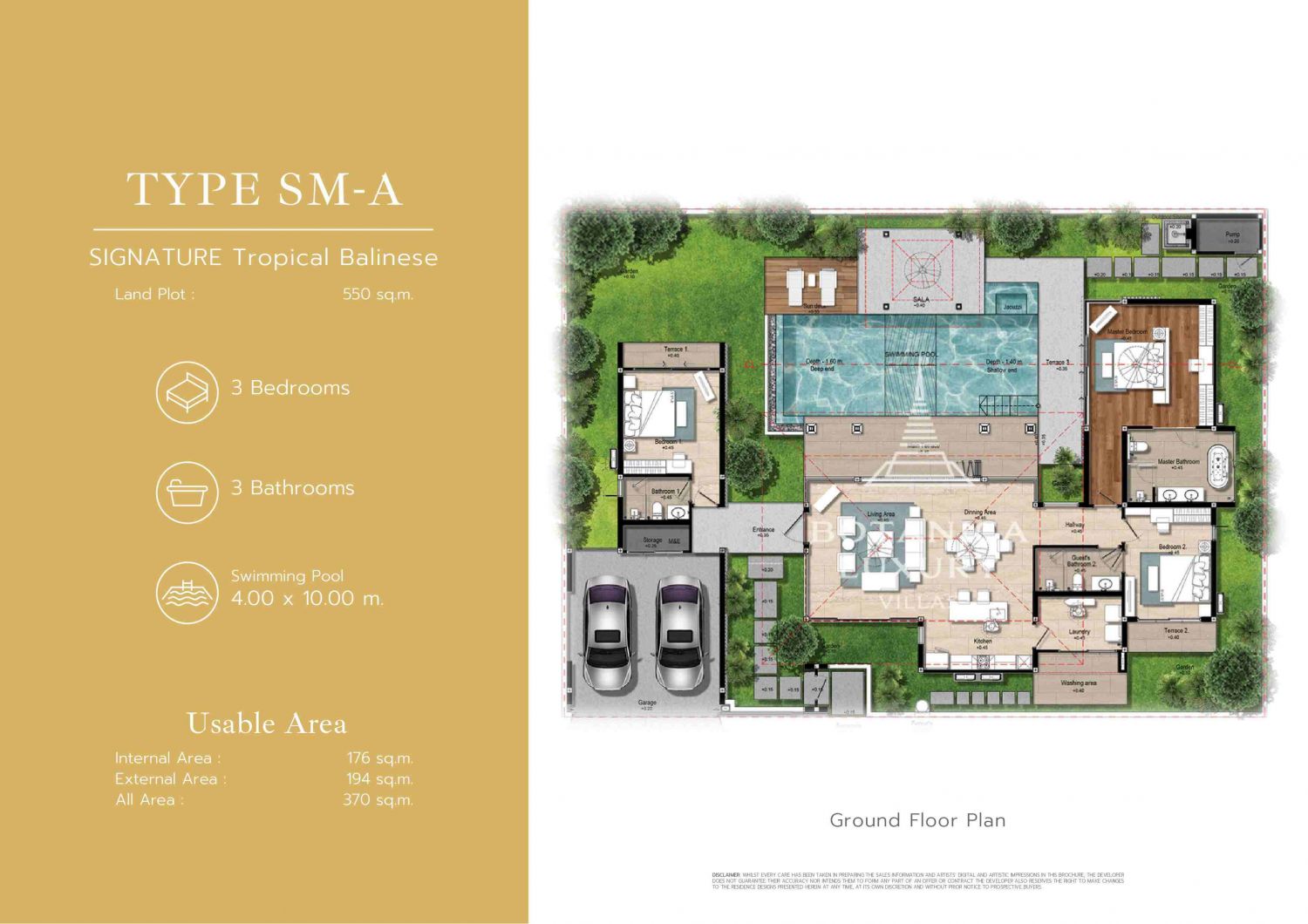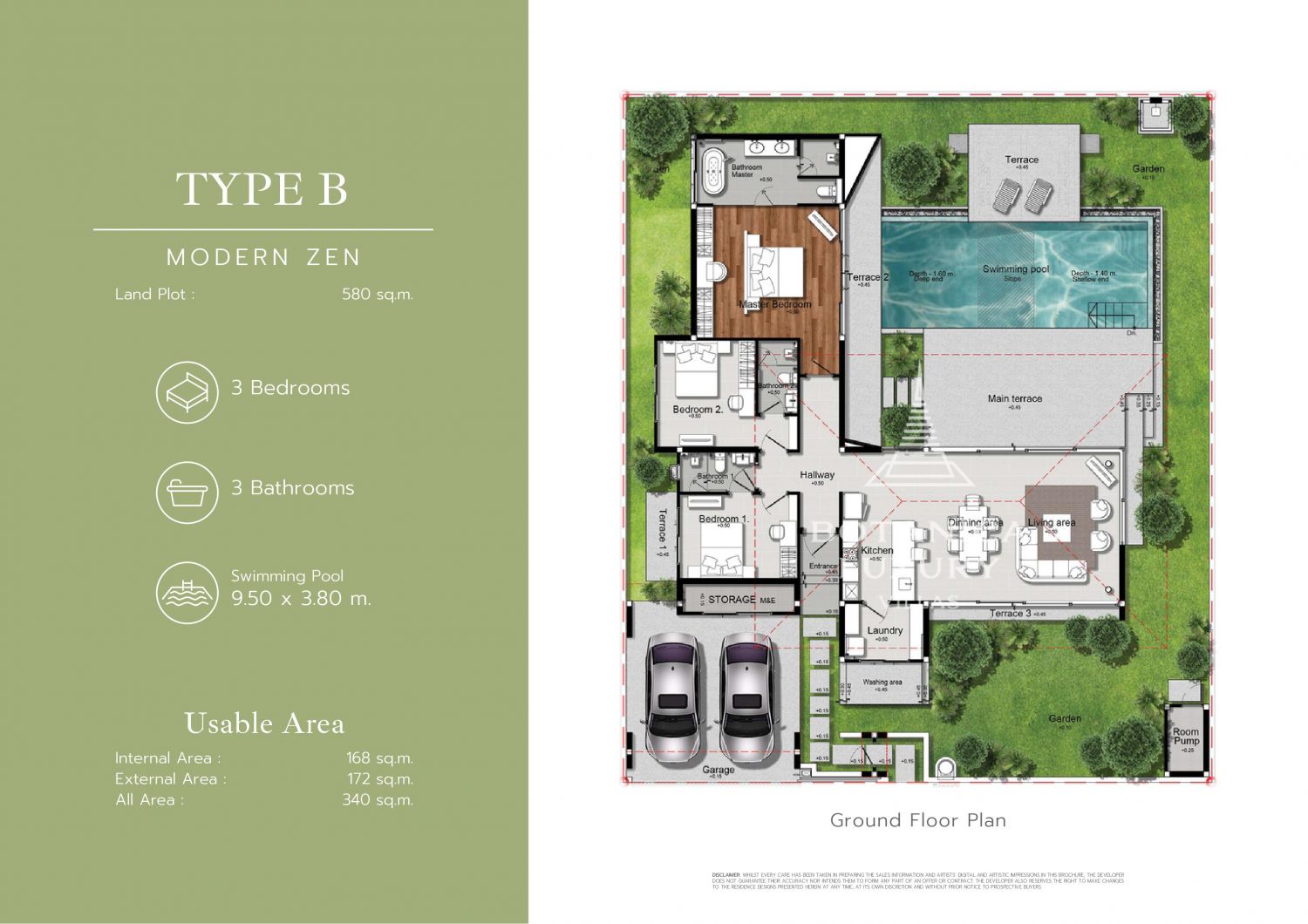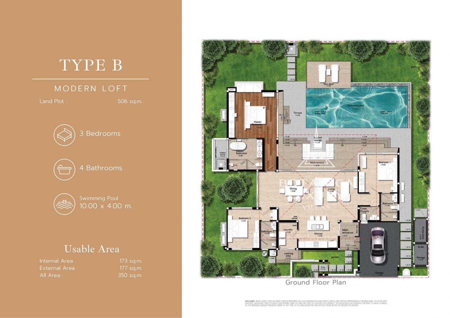 Эти замечательные одноэтажные виллы, доступные к покупке, распологают тремя спальнями и тремя санузлами, а на территории расположились бассейны с кристально чисто водой размером 9.5 х 3.8 м.