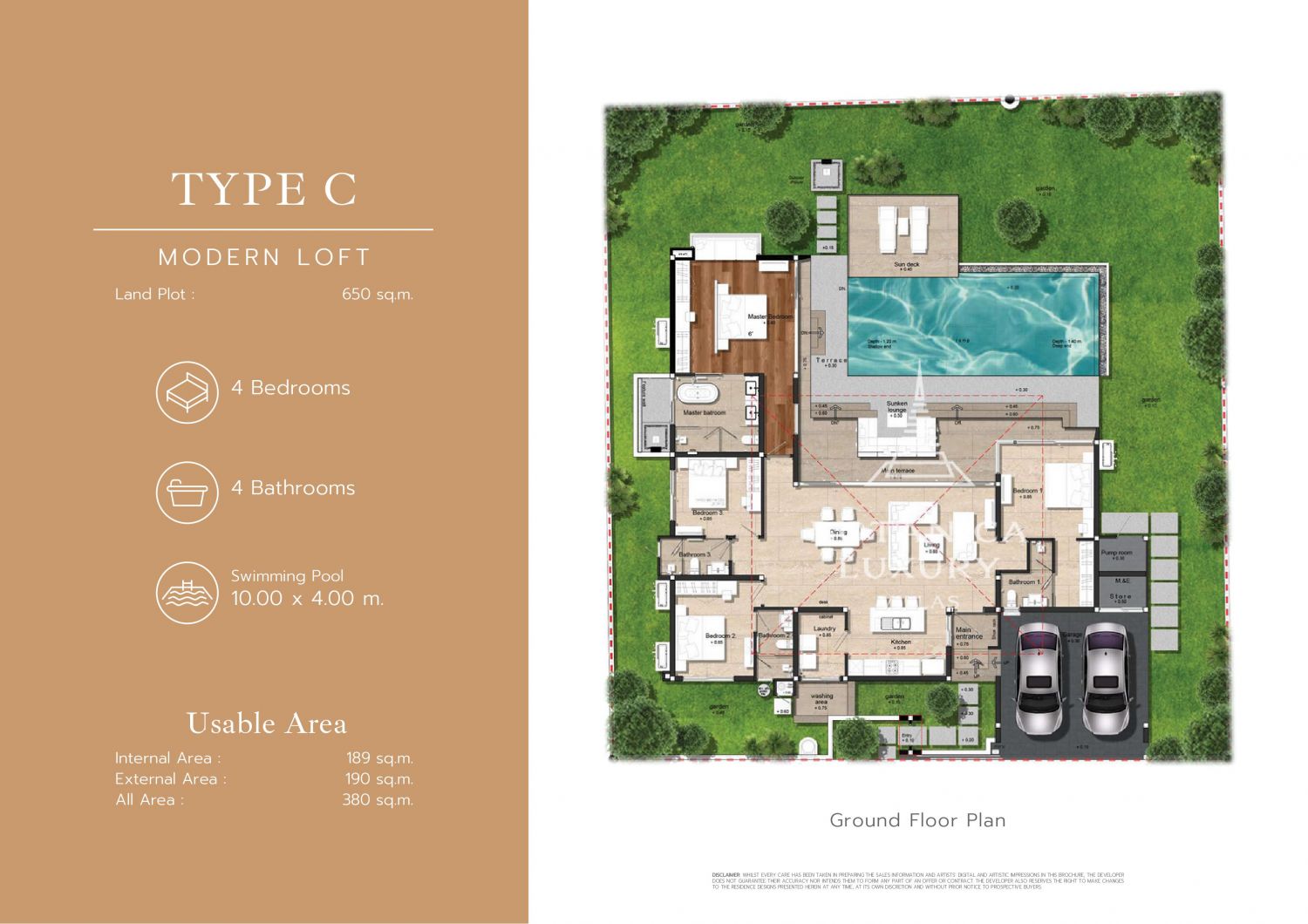 Вы можете купить эти элегантные виллы, которые состоят из одного этажа. На участке каждой виллы расположился прекрасный бассейн размером 10 х 4 метра.