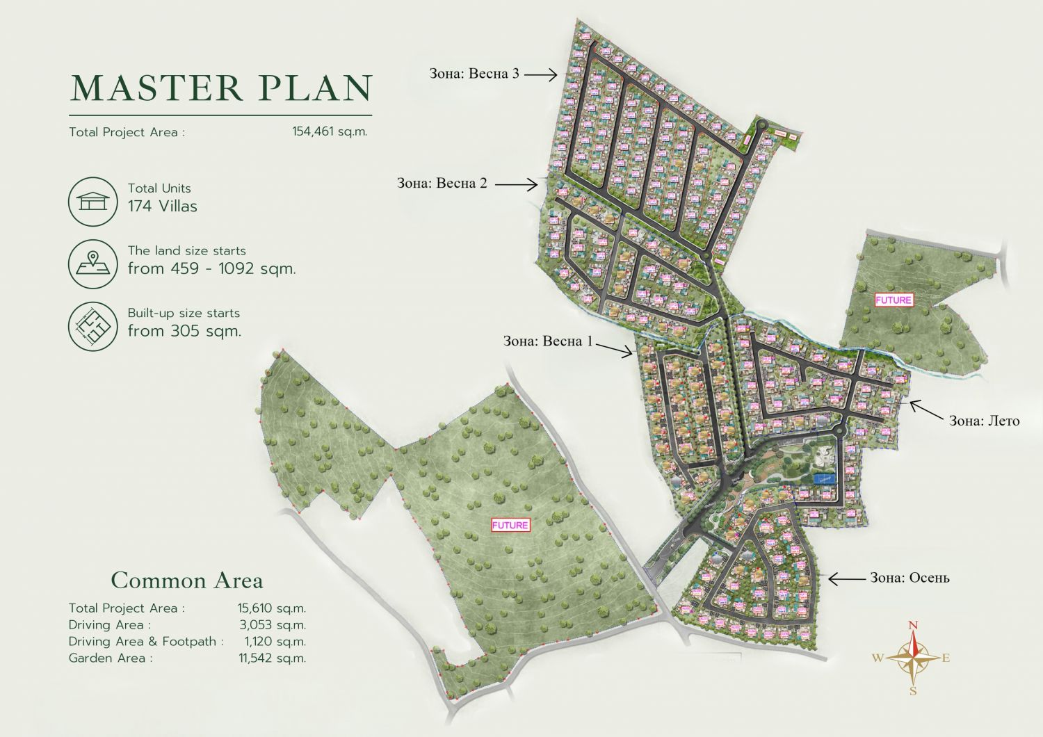 Комплекс вилл Botanica Four Seasons расположился на большой площади, размером 154.461 кв.м.