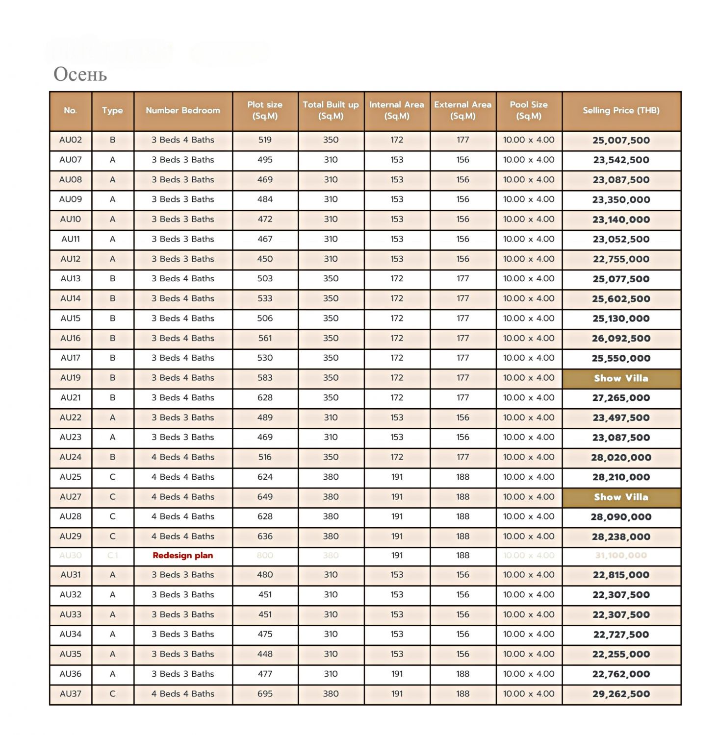 Всего в проекте 174 виллы, которые разделяются по временам года: весна, лето и осень.