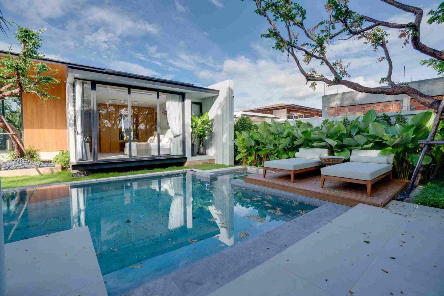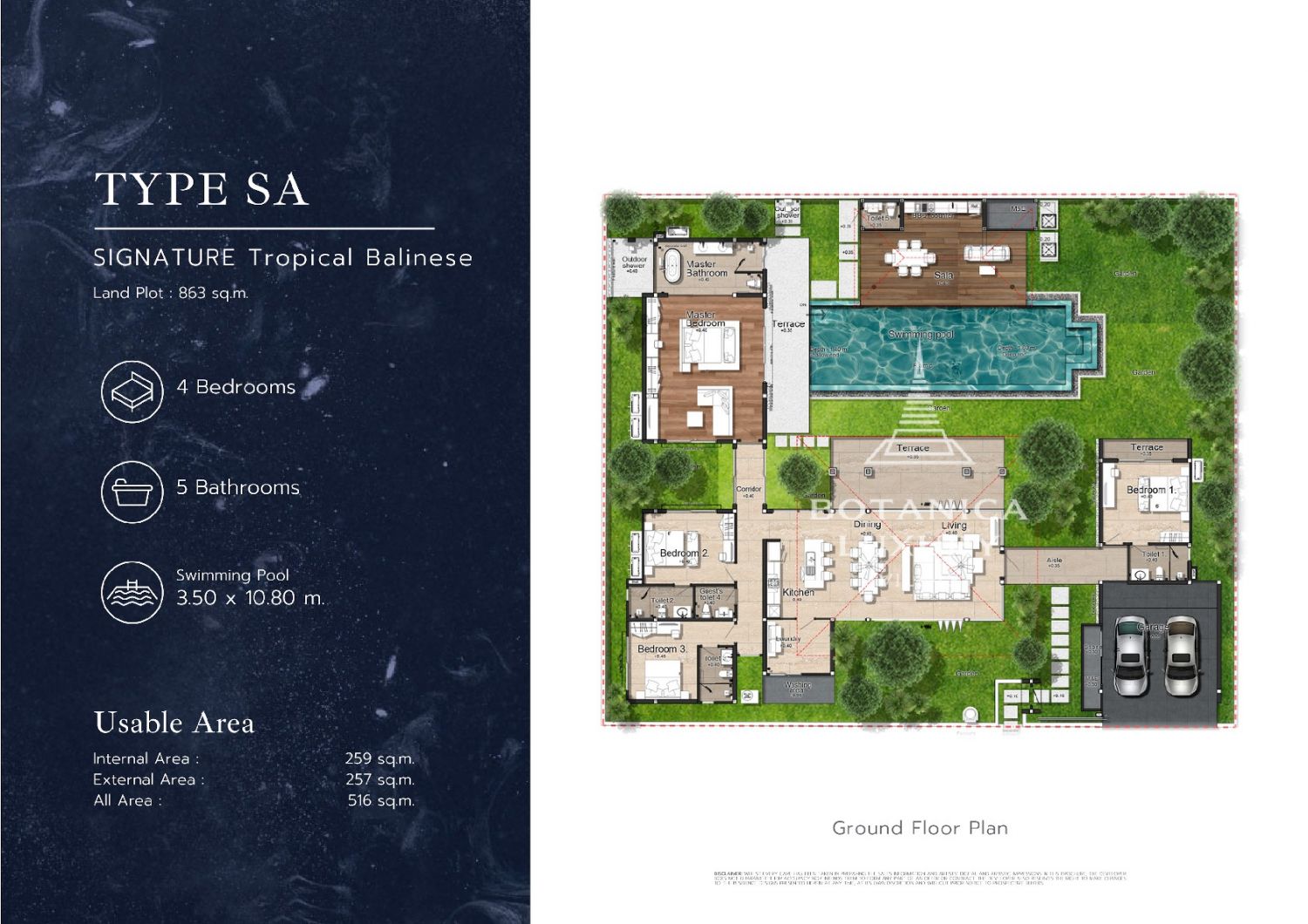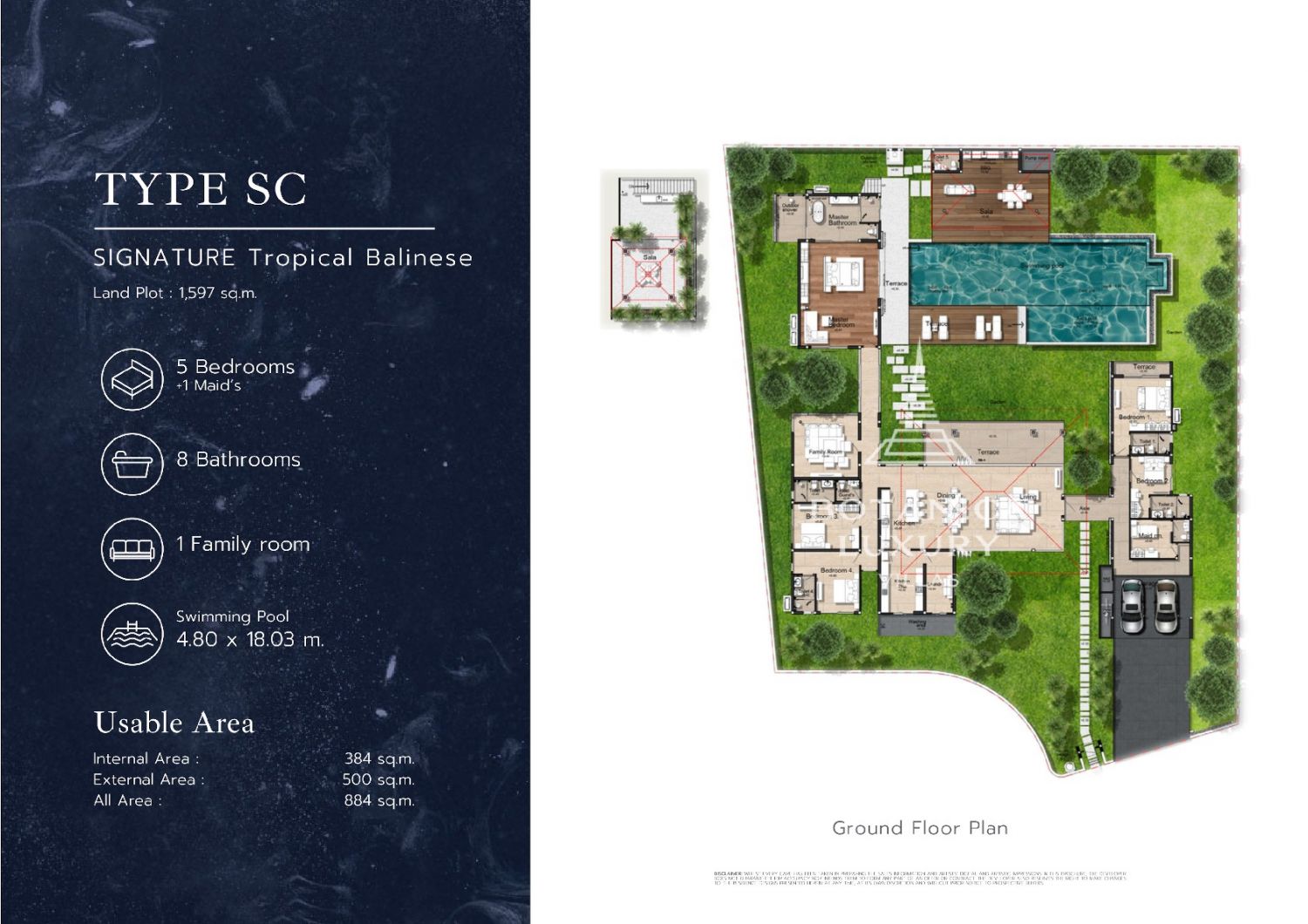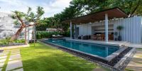 Зона D - это 7 фирменных вилл, выполненных в тропическом балийском стиле. Каждая вилла окружена пышной зеленью и имеет собственный бассейн, предлагая гостям идеальное место для отдыха и релаксации. Размер участков составляет от 601 кв.м до 830 кв.м. Площадь застройки начинается от 373 кв.м. Стоимость начинается от 43 730 000 бат.