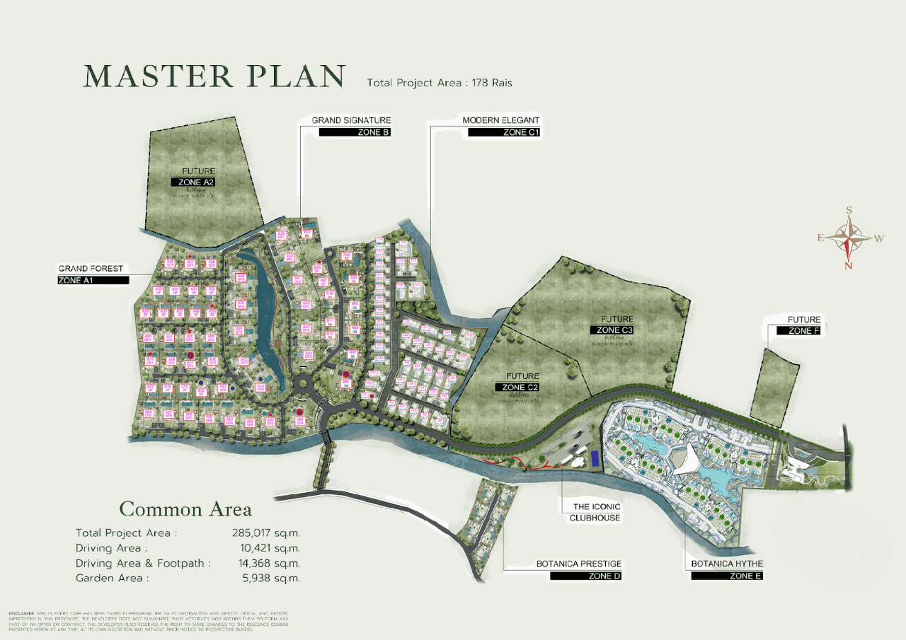 Комплекс вилл расположен на участке 28.48 га. Эта обширная территория поражает своим размахом. В плане представлены зоны, на которые делится комплекс.
