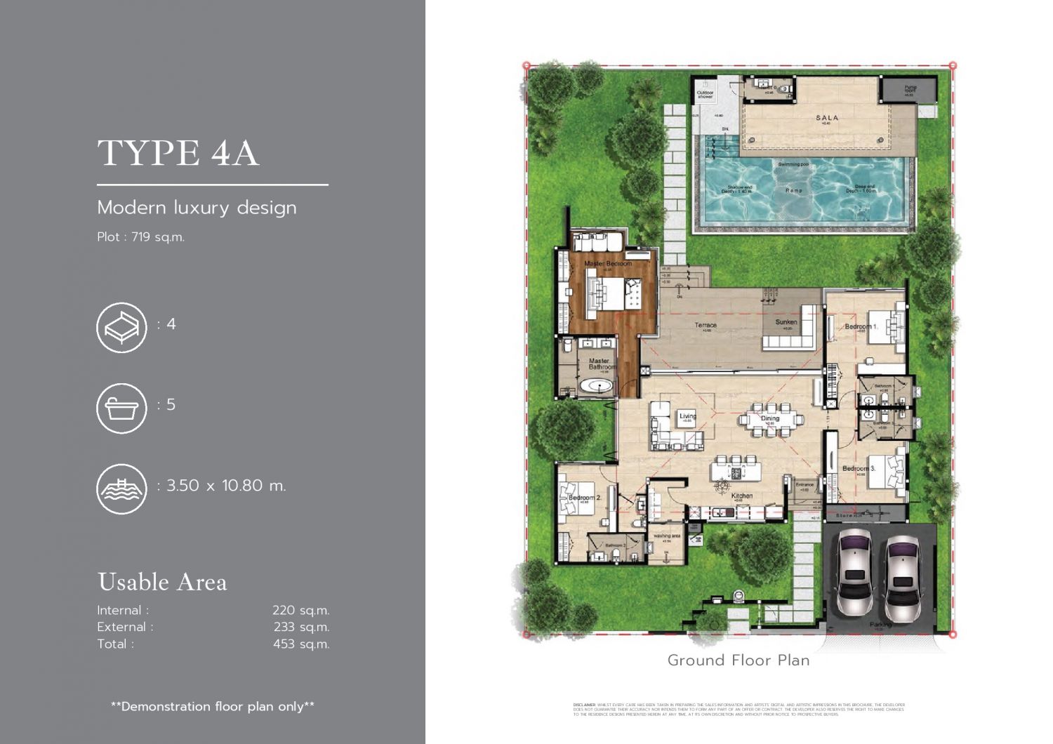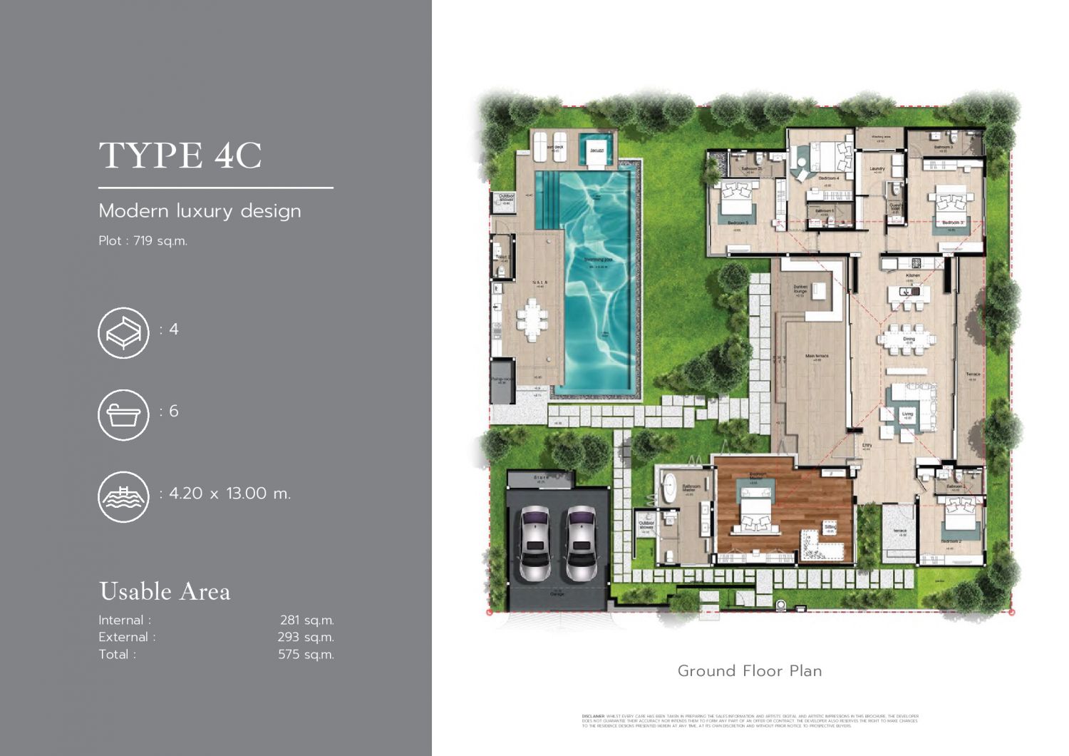 Виллы, доступные к покупке, представляют собой роскошное одноэтажное строение, включающее четыре просторные спальни и пять современных санузлов, расположенных на участке площадью 719 квадратных метров.