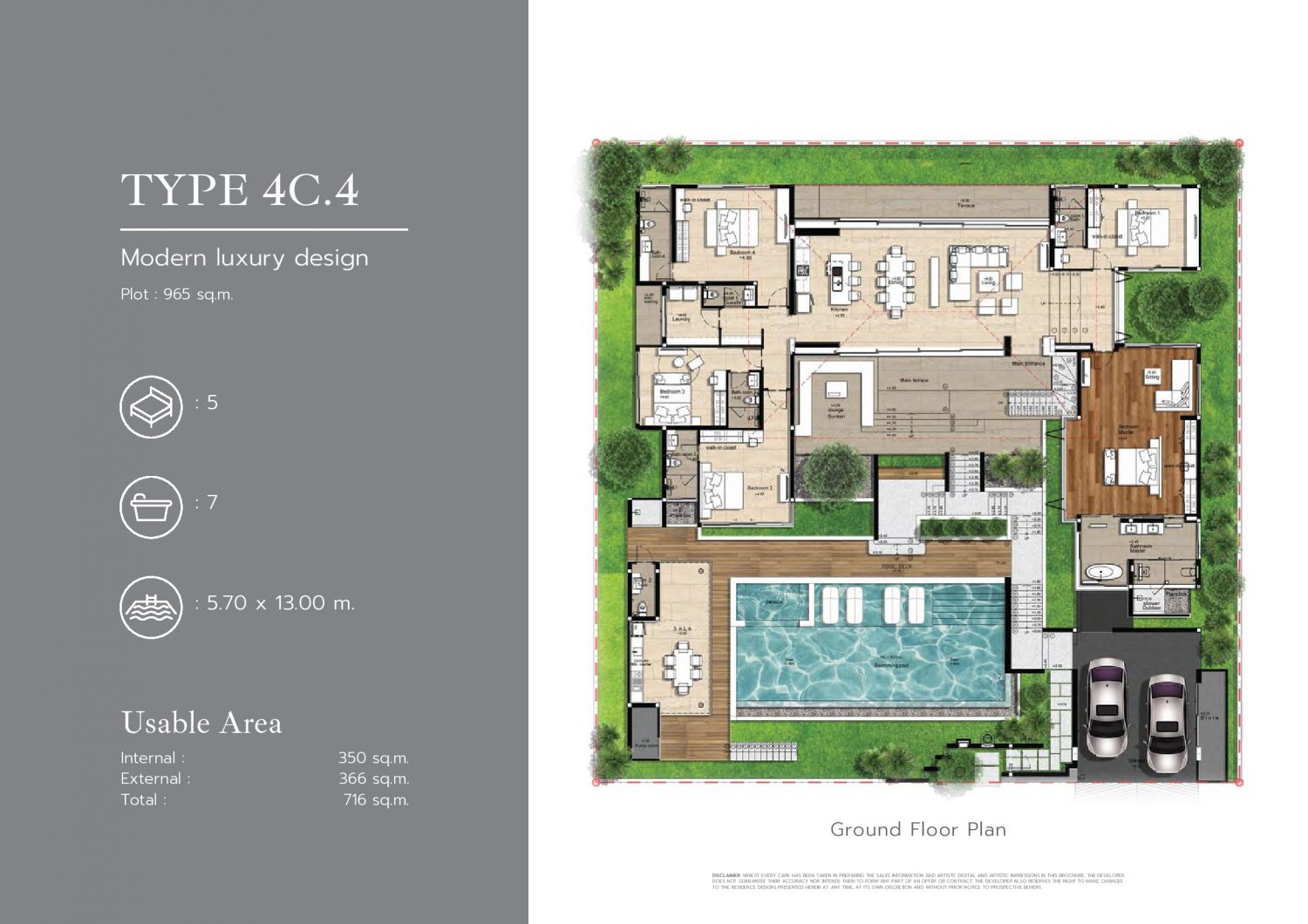 Вы можете купить виллы, которые включают в себя один этаж, пять спален и семь санузлов, обеспечивая комфорт и простор для всех жильцов и гостей.
