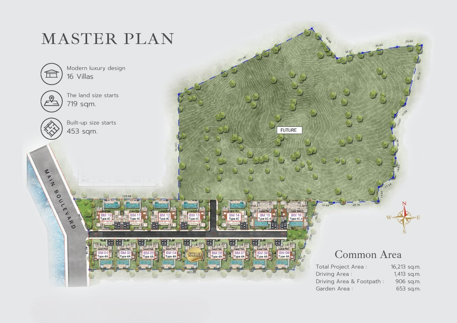 Общая площадь проекта Botanica Montazure составляет 16.213 квадратных метров.