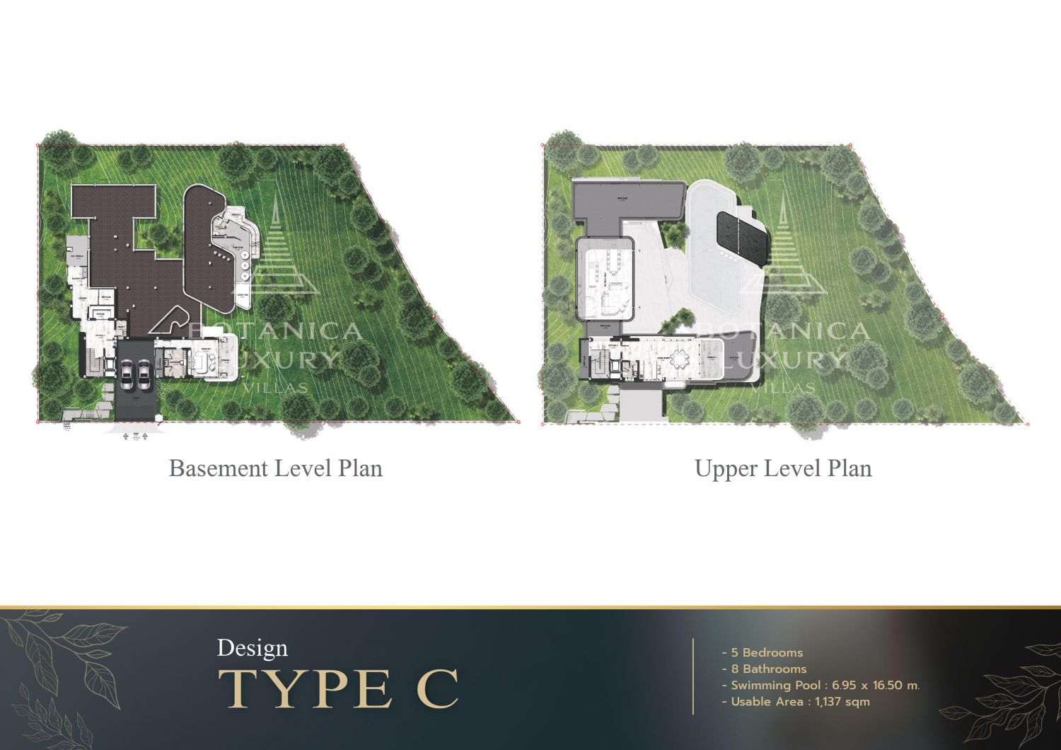 Эти великолепные резиденции располагаются на просторных земельных участках, площадь которых варьируется от 926 до 2.465 квадратных метров, предоставляя владельцам уединение и ощущение абсолютной свободы.