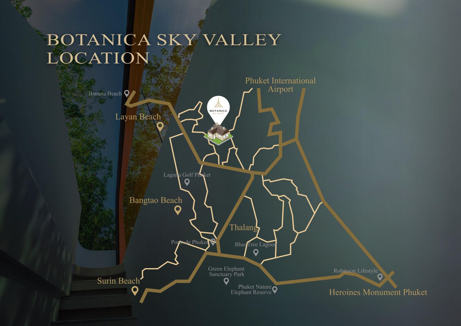 Комплекс вилл Botanica Sky Valley выгодно отличается своим местоположением: всего в нескольких минутах езды расположены белоснежные пляжи Лаяна и Бангтао с их золотистым песком и кристально чистой водой.