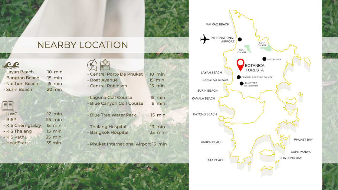 Комлпекс расположен в популярном районе Бангтао/Лаян среди других жилых комплексов такого же уровня.