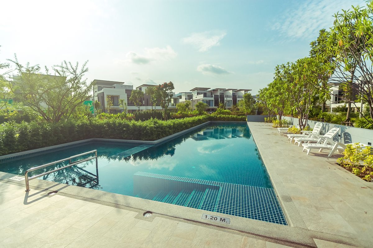 В самом комплексе Лагуна Парк: охрана, общий бассейн, детская площадка.