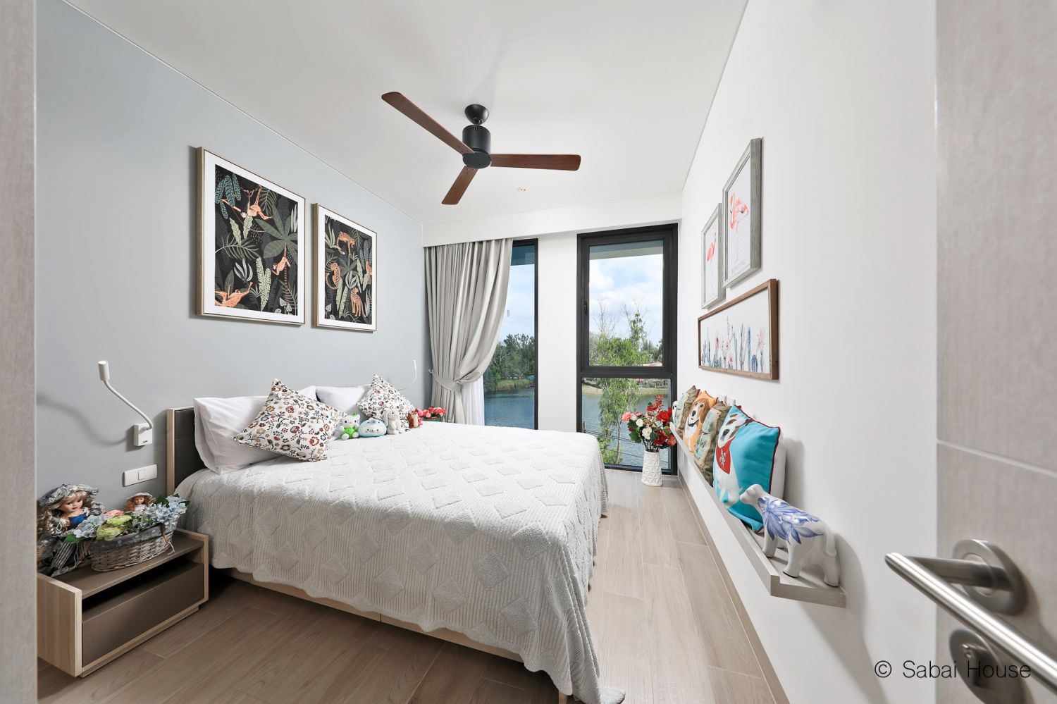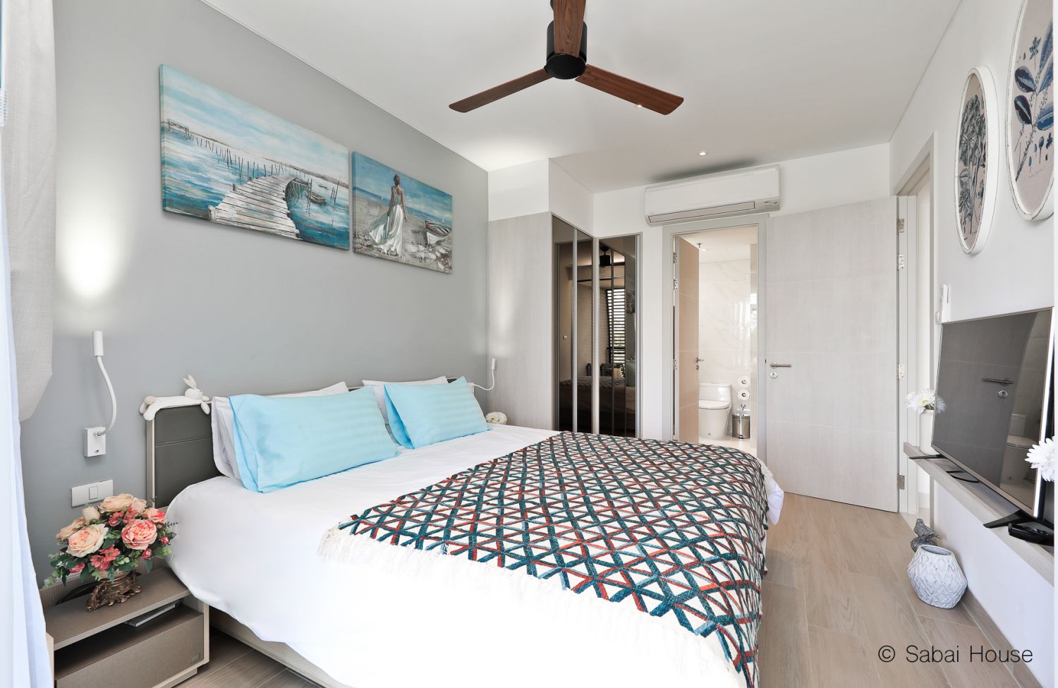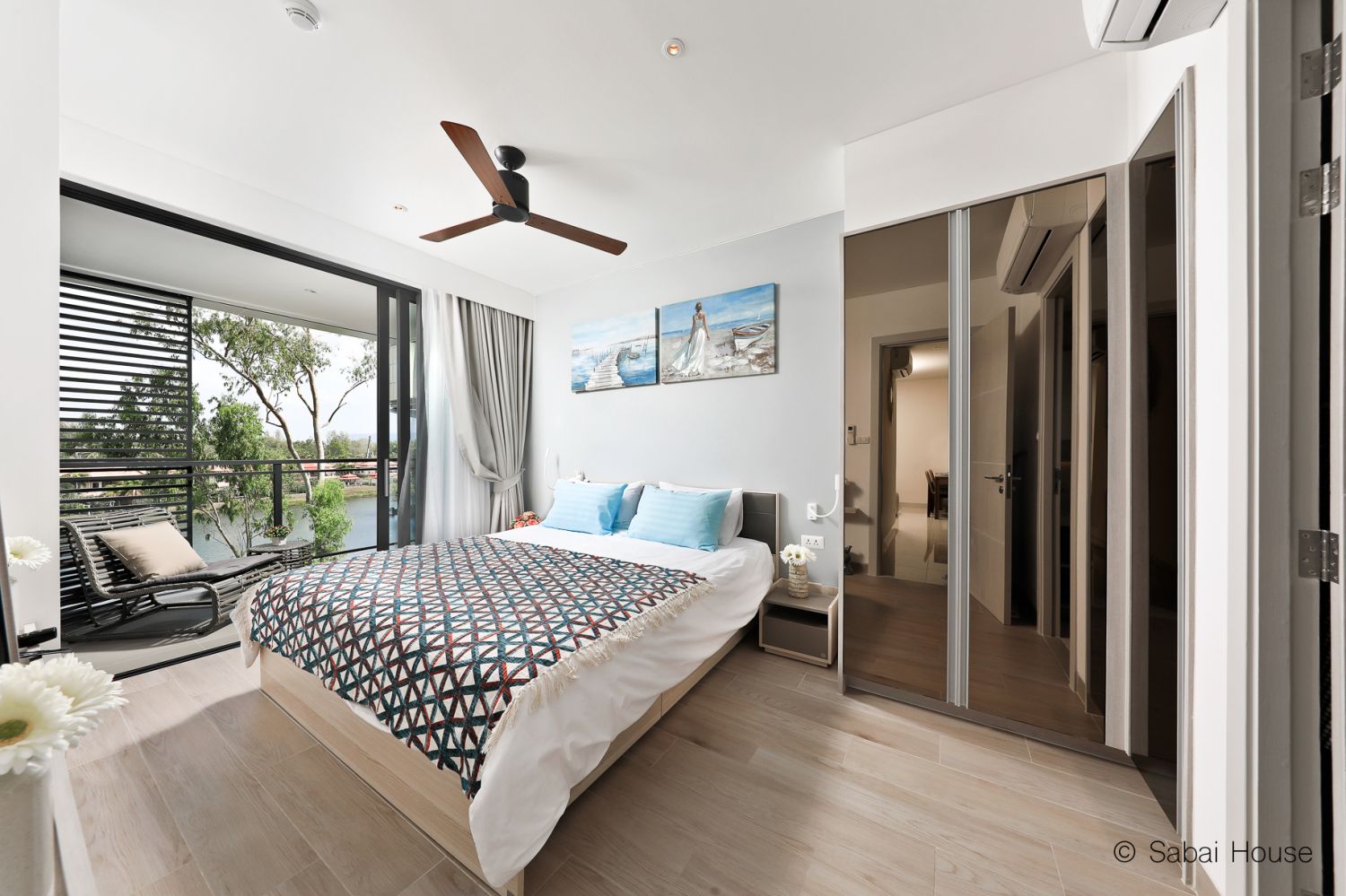 Спальня с двуспальной кроватью и видом на Лагуну.