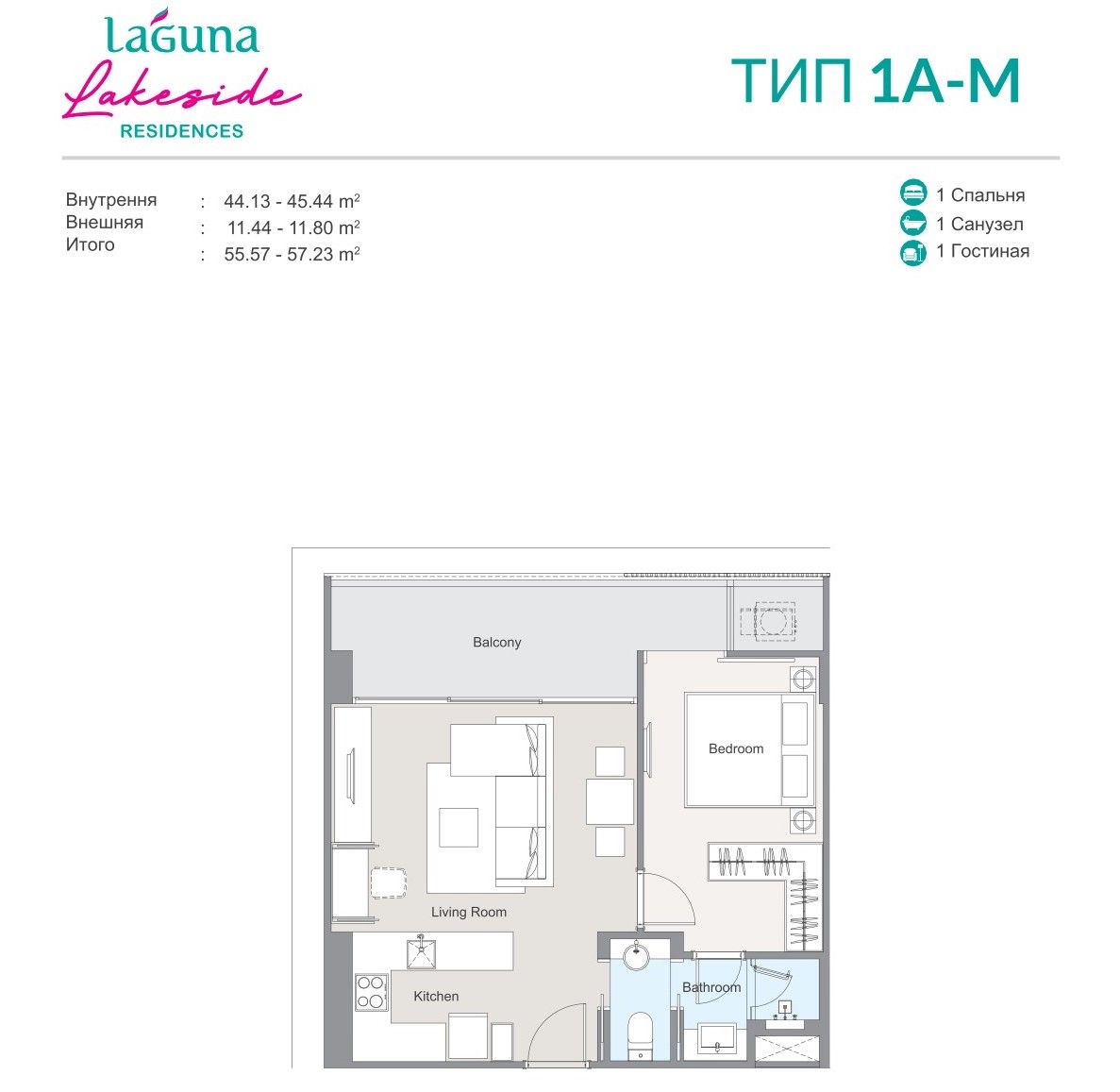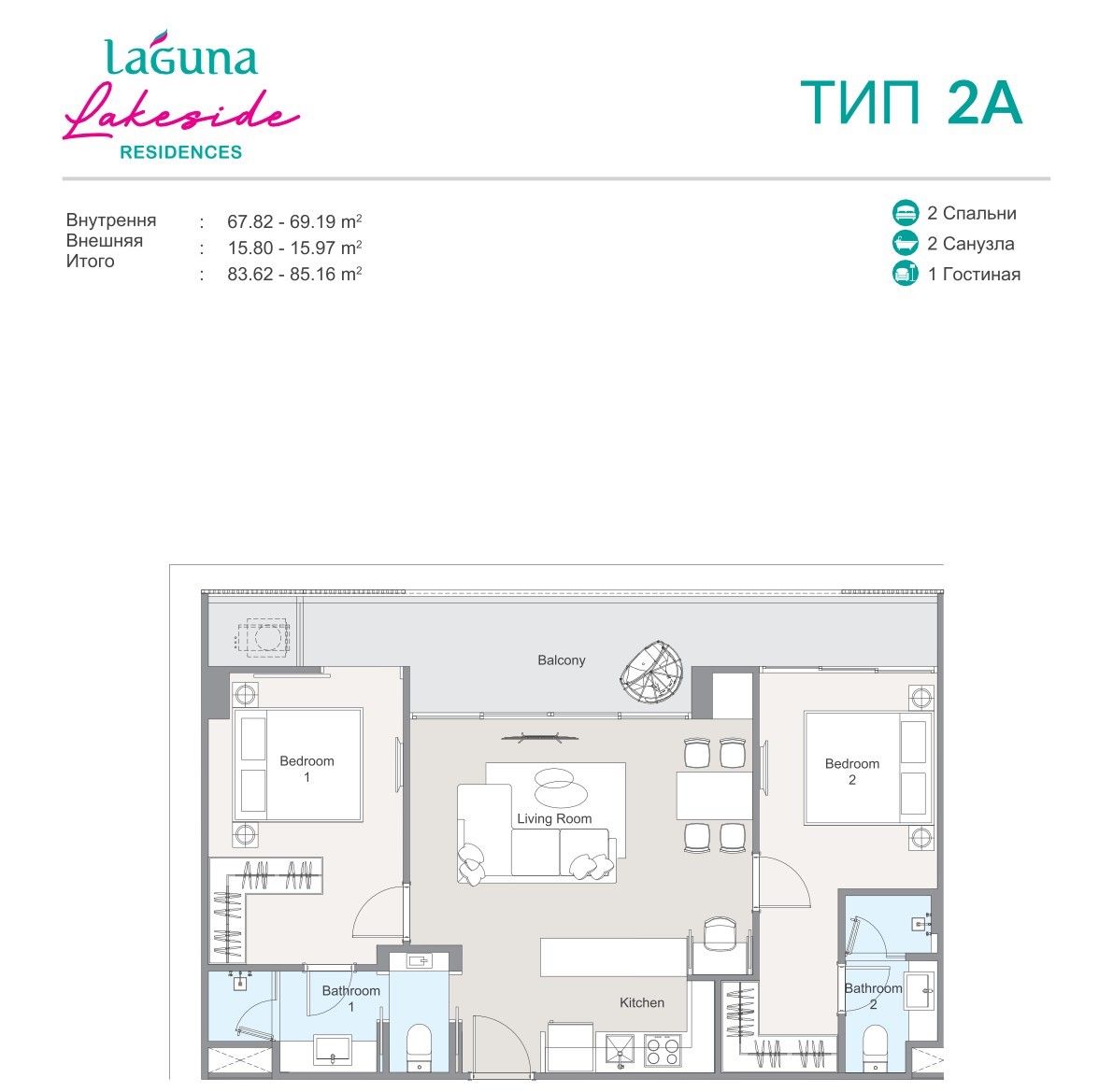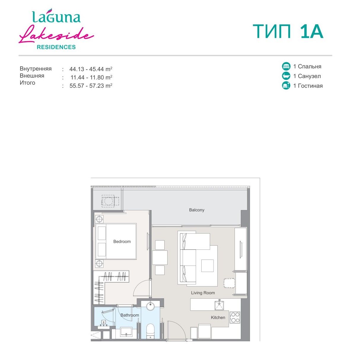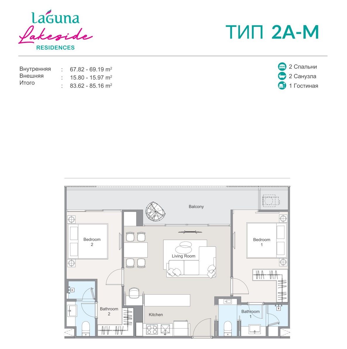 Квартиры в проекте Laguna Lakeside Residences сдаются в двух вариациях.