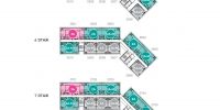 Комплекс включает в себя 4 элегантных семиэтажных здания. На каждом этаже предусмотрено по 9-10 просторных и функционально спланированных квартир.