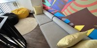Небольшая гостиная, объединяющая все комнаты этой стильной квартиры.