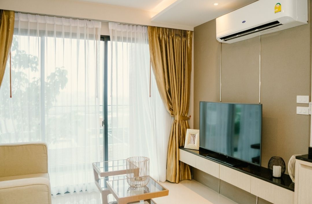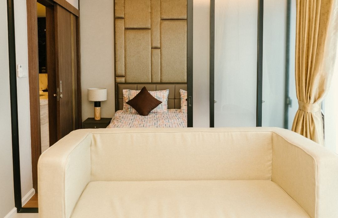 раскладной диван в гостиной комнате,