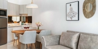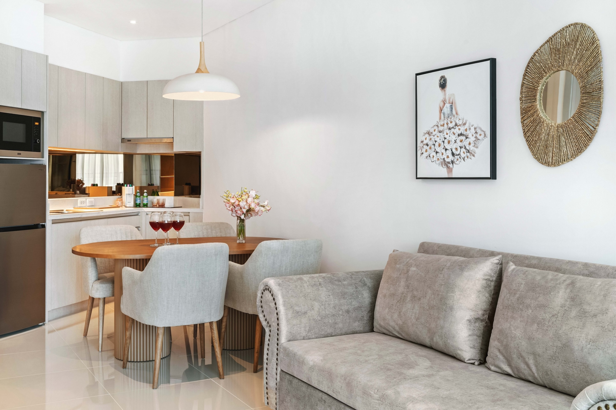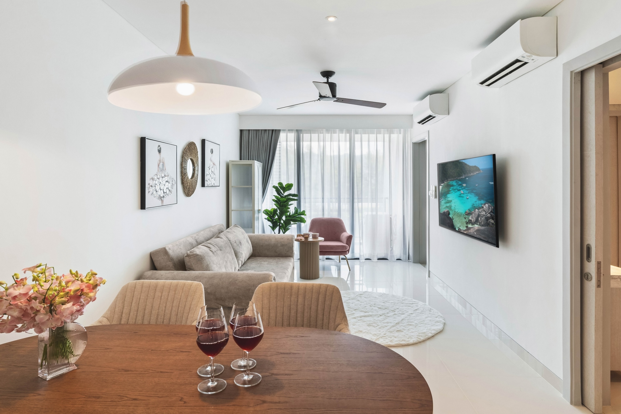 Удобный стол и мягкие стулья, полностью оборудованная кухня - все для радости во время вашего пребывания в квартире на Пхукете.