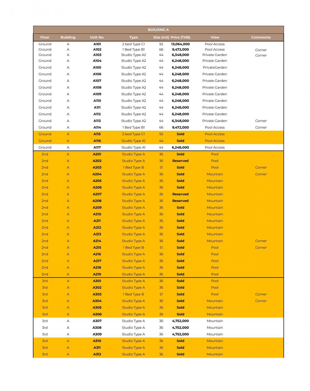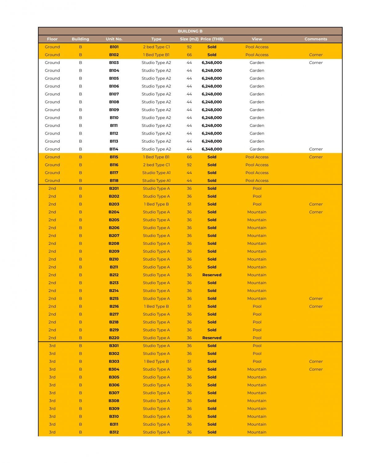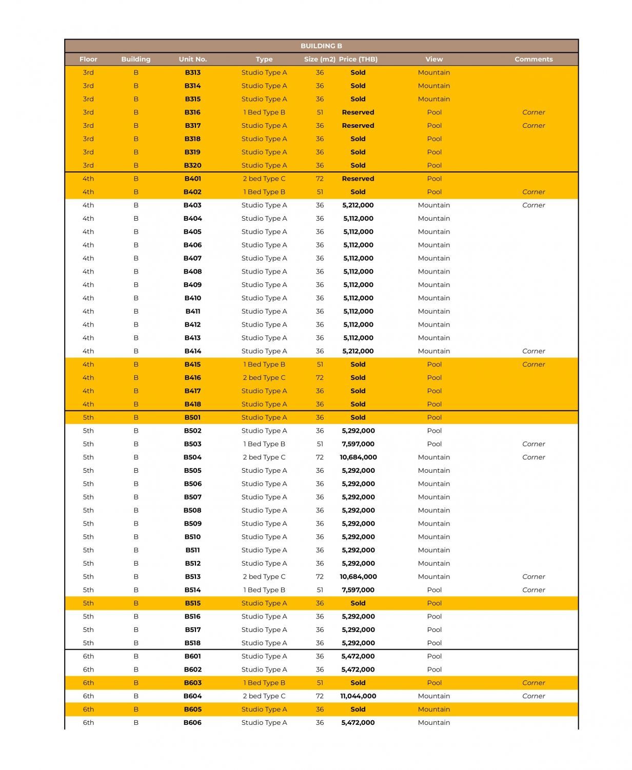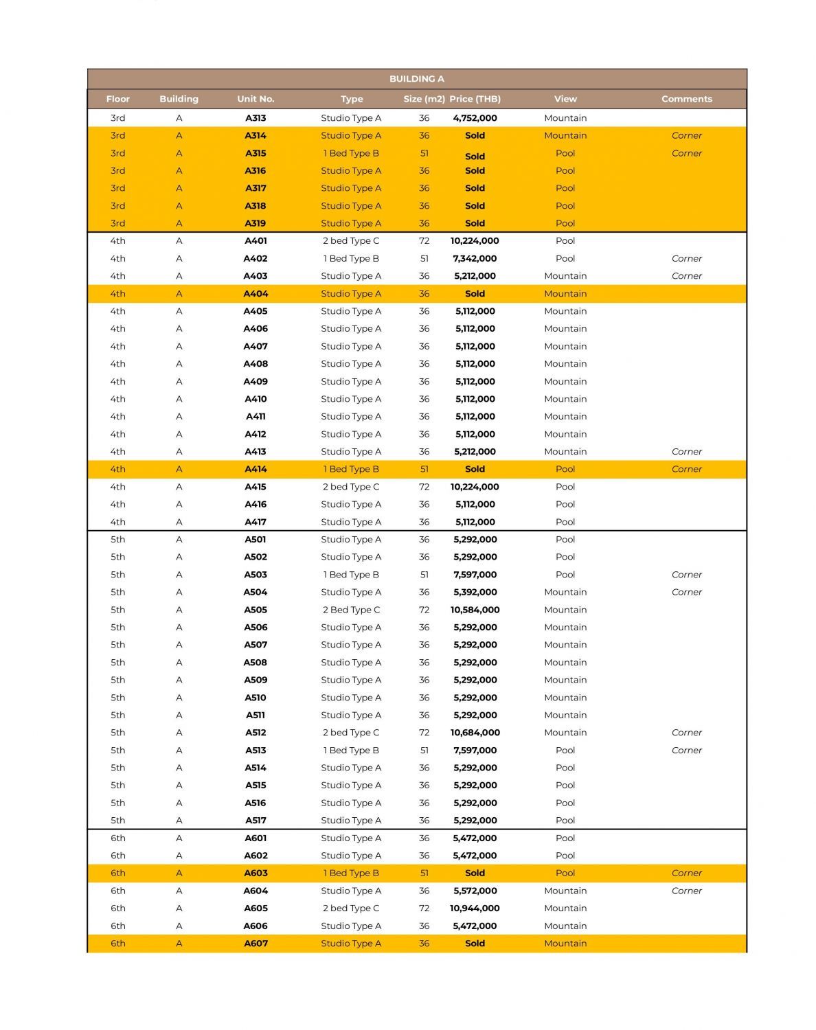 Здания А и В представляет собой кондоминиум, в котором расположились уютные квартиры от студий до двухкомнатных апартаментов. Стоимость от 4 752 000 бат.