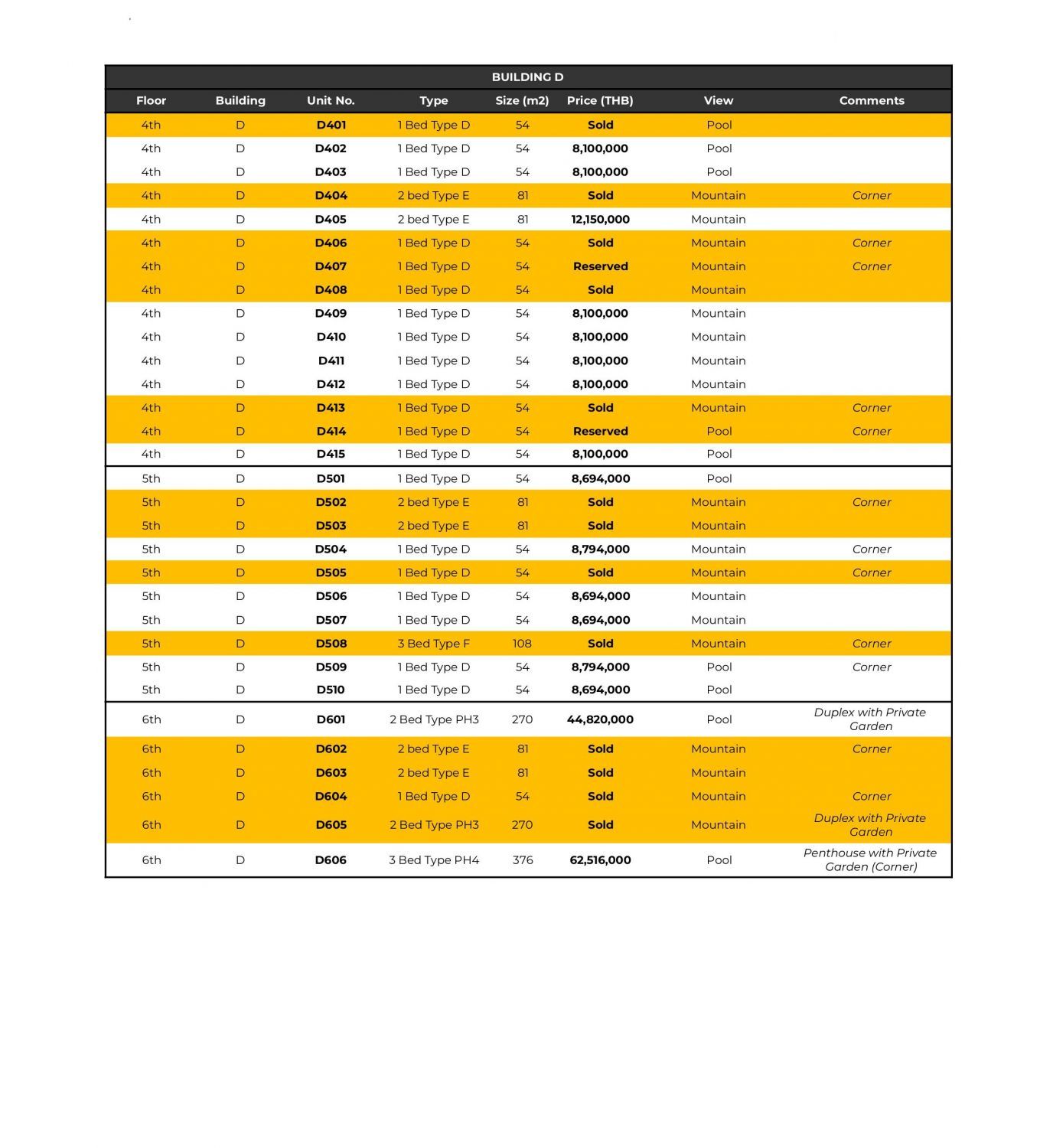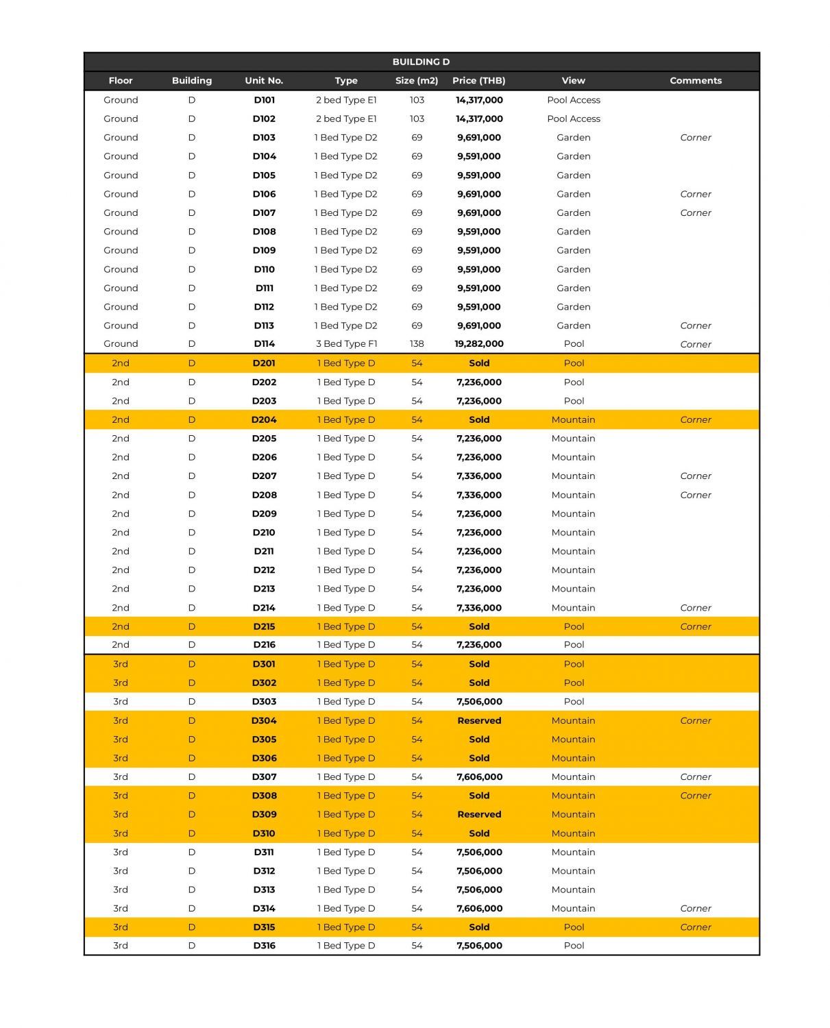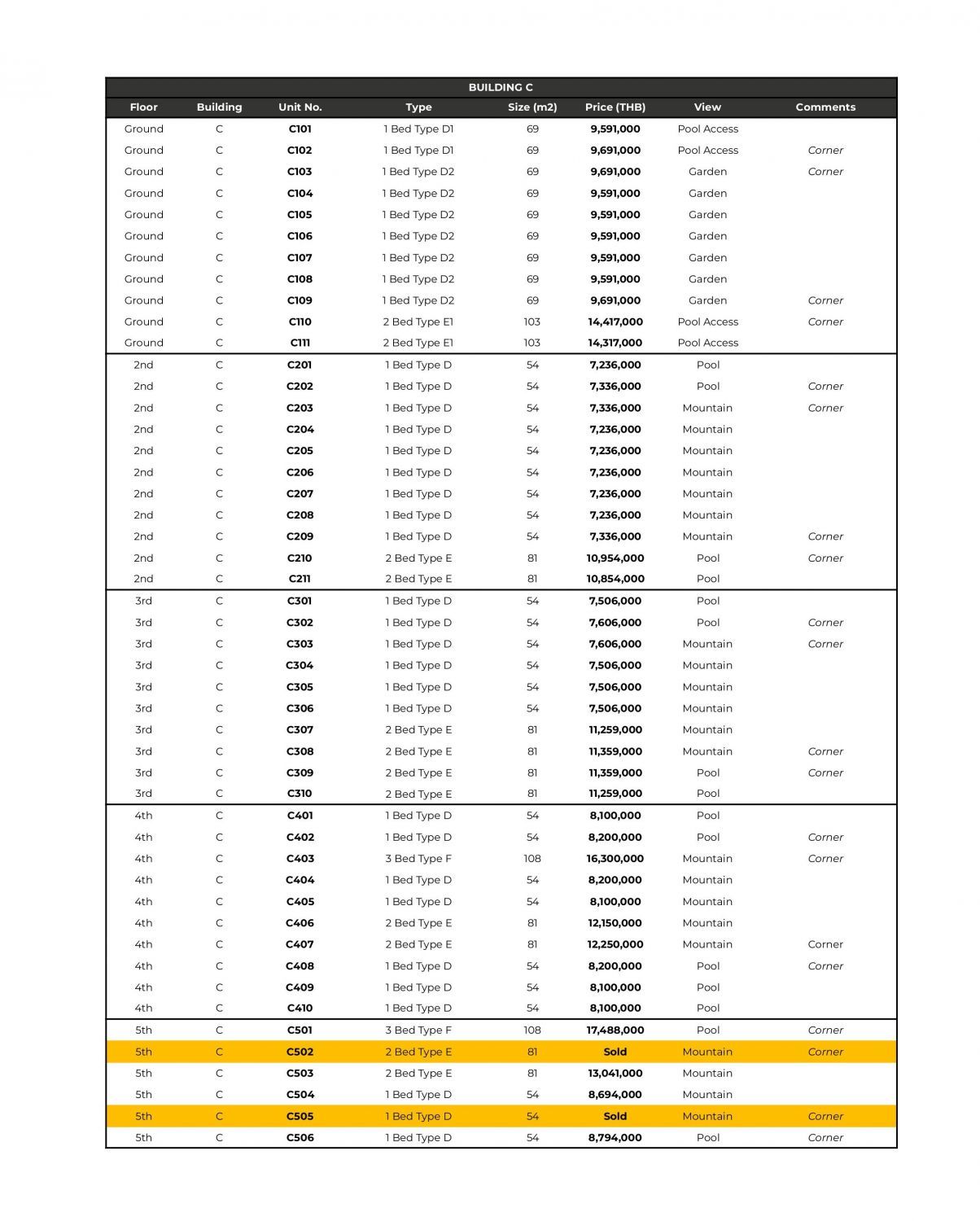 Здания С и D - это резиденции с 1, 2 или 3 комнатами, которые оборудованы всем необходимым для комфортного проживания. Стоимость от 7 236 000 бат.