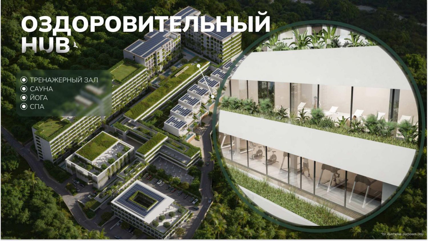 Оздоровительная зона предоставляет всё необходимое для поддержания здоровья и физической формы: тренажерный зал, занятия йогой, спа и сауна.