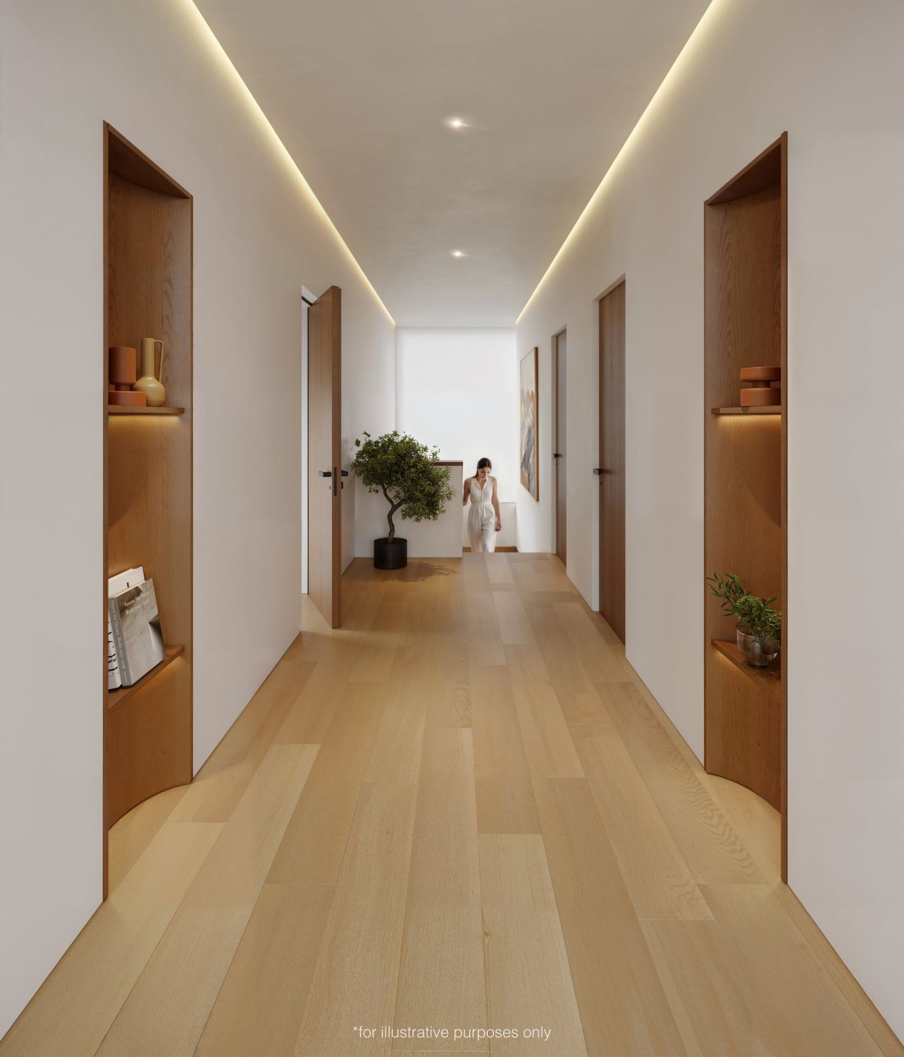 Здания состоят из шести этажей и предлагают разнообразие планировок: от уютных однокомнатных до просторных трехкомнатных квартир. Доступны к покупке варианты квартир с приватной террасой или с доступом к бассейну.