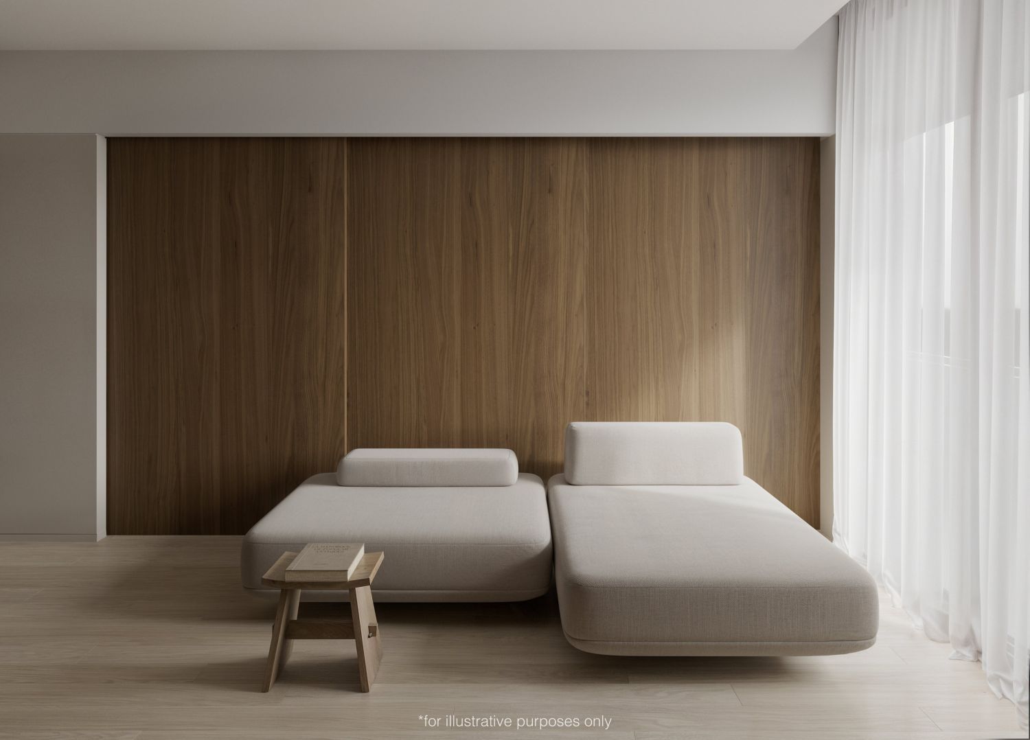 Виллы оснащены тремя спальными комнатами и личными бассейнами, воплощая утонченную эстетику минимализма. Стоимость от 22 757 000 бат.