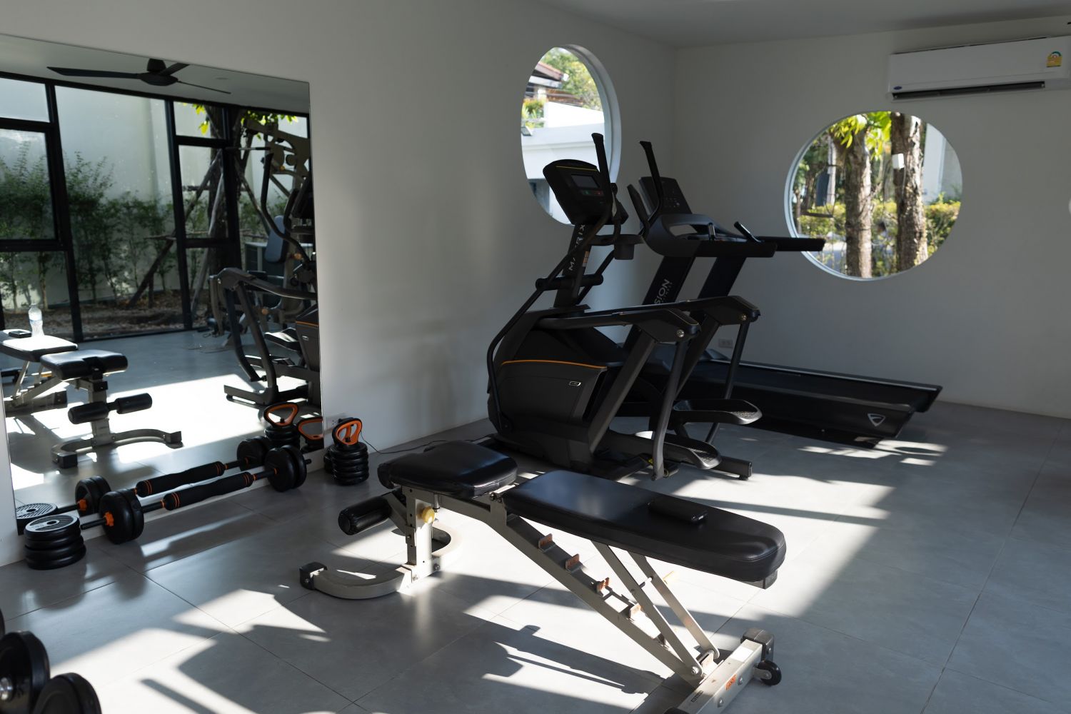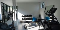 На территории комплекса находится тренажерный зал, оснащенный всем необходимым для полноценной тренировки.