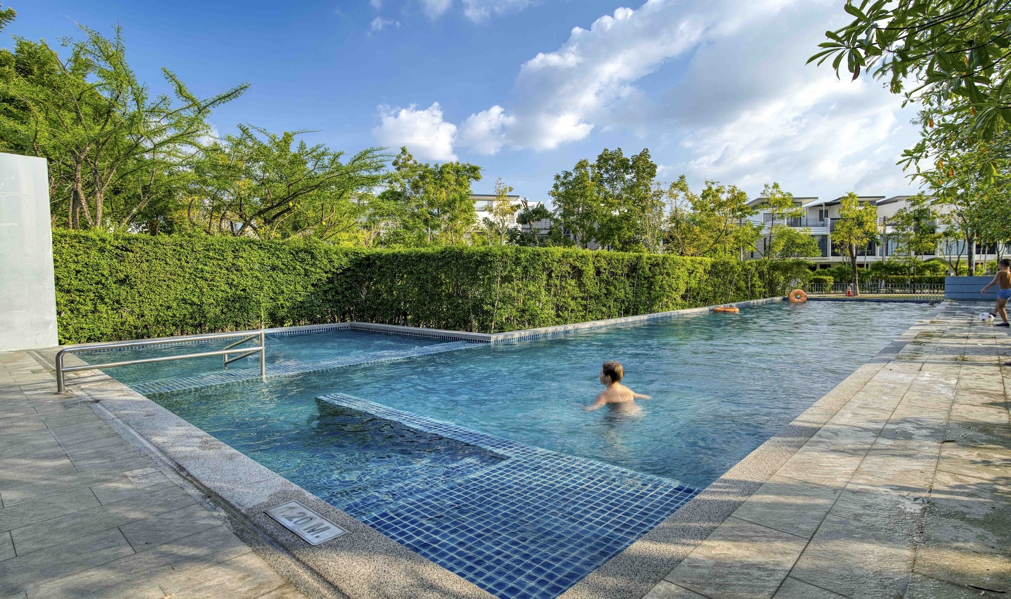 В комплксе есть детская площадка, бассейн, зона барбекю.