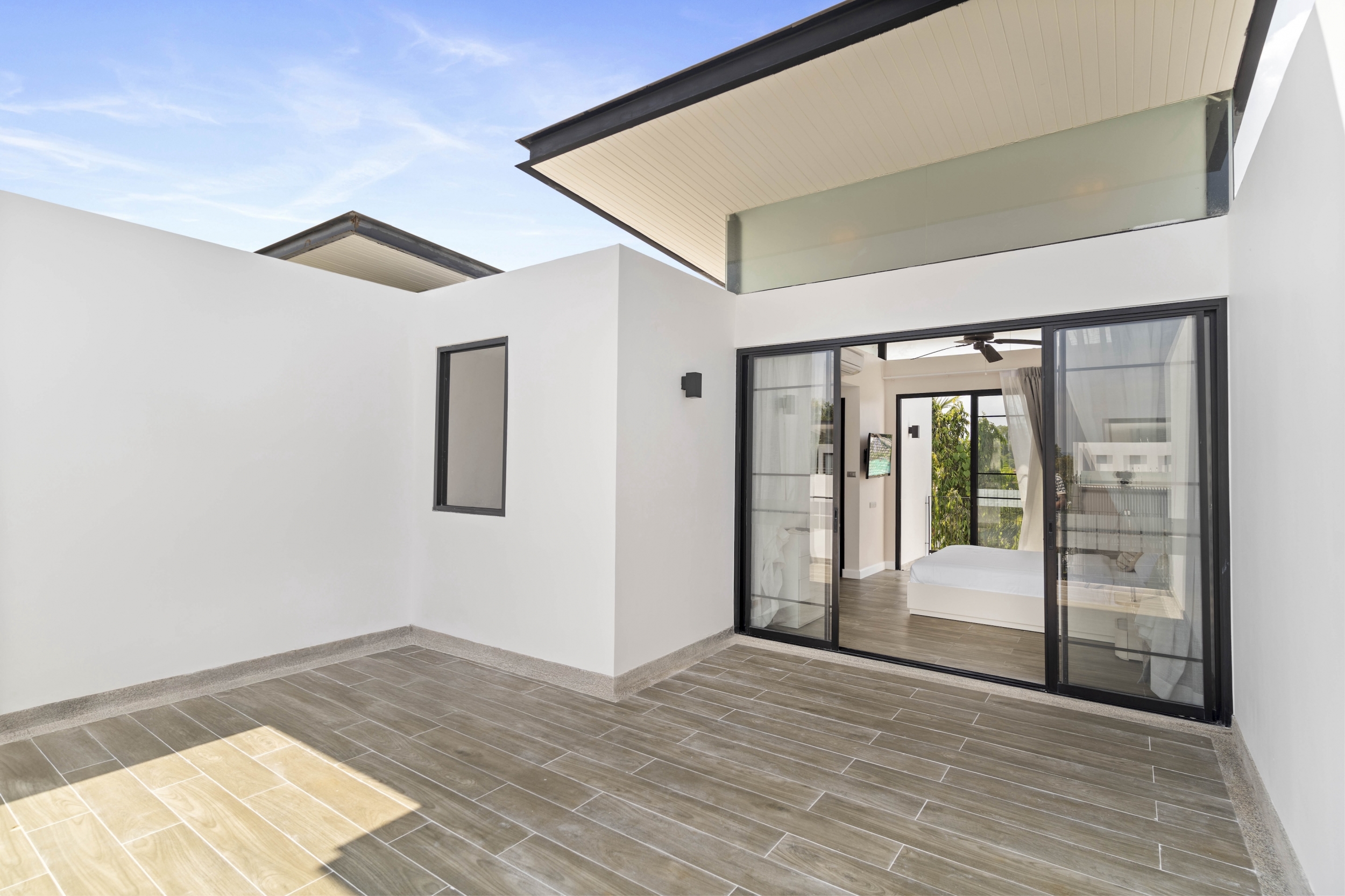 В доме есть парковка, задний дворик и терраса на третьем этаже.