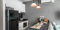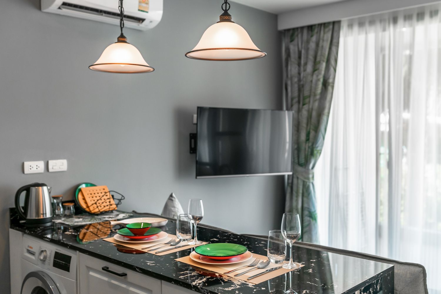 Отличное, свежее кондо, в номере есть все, что нужно для жизни (стиралка, большой холодильник, утюг, блендер, тостер) и для приготовления пищи (сковороды, посуда, приборы)
