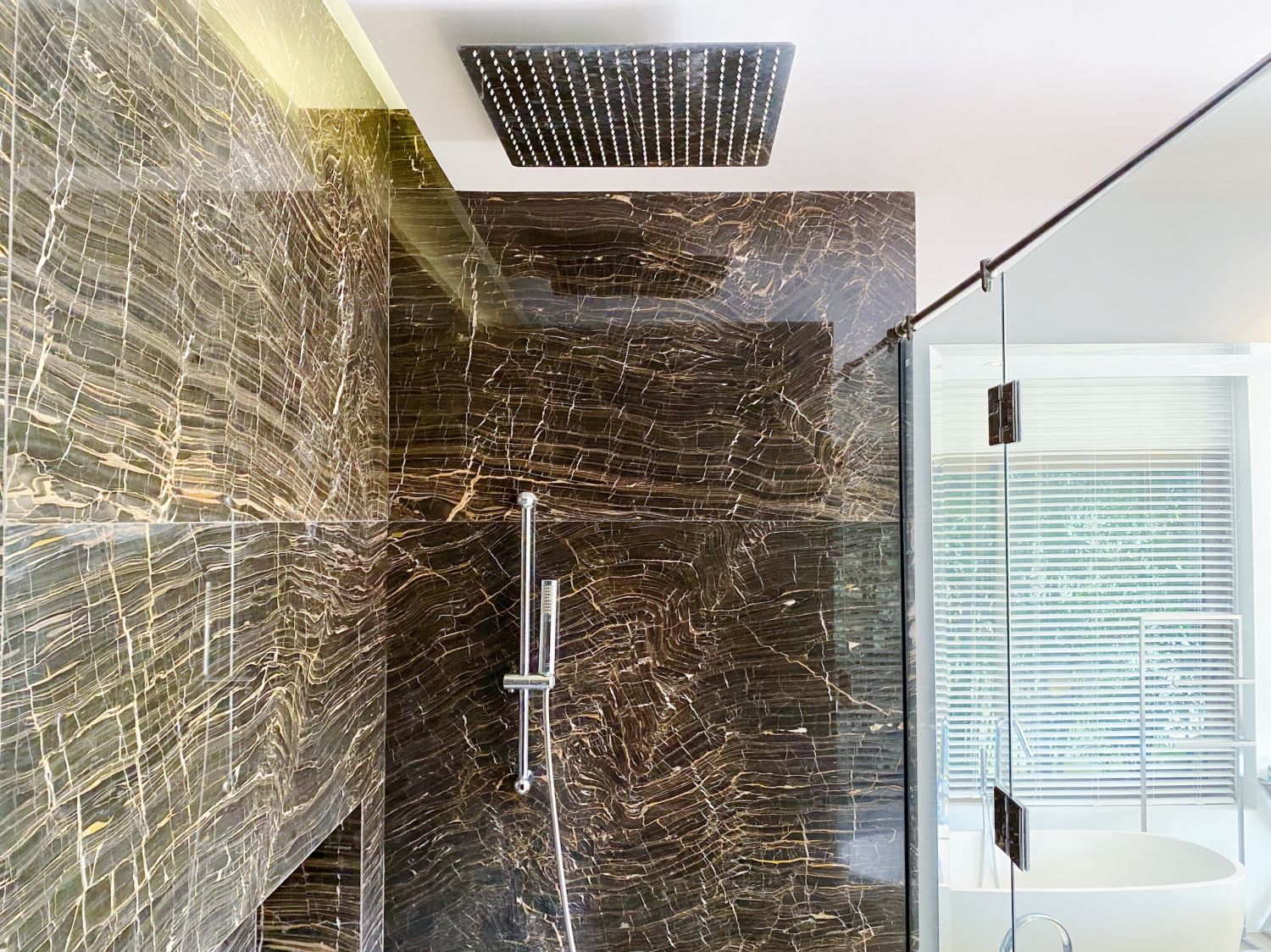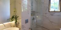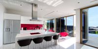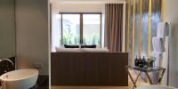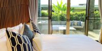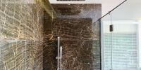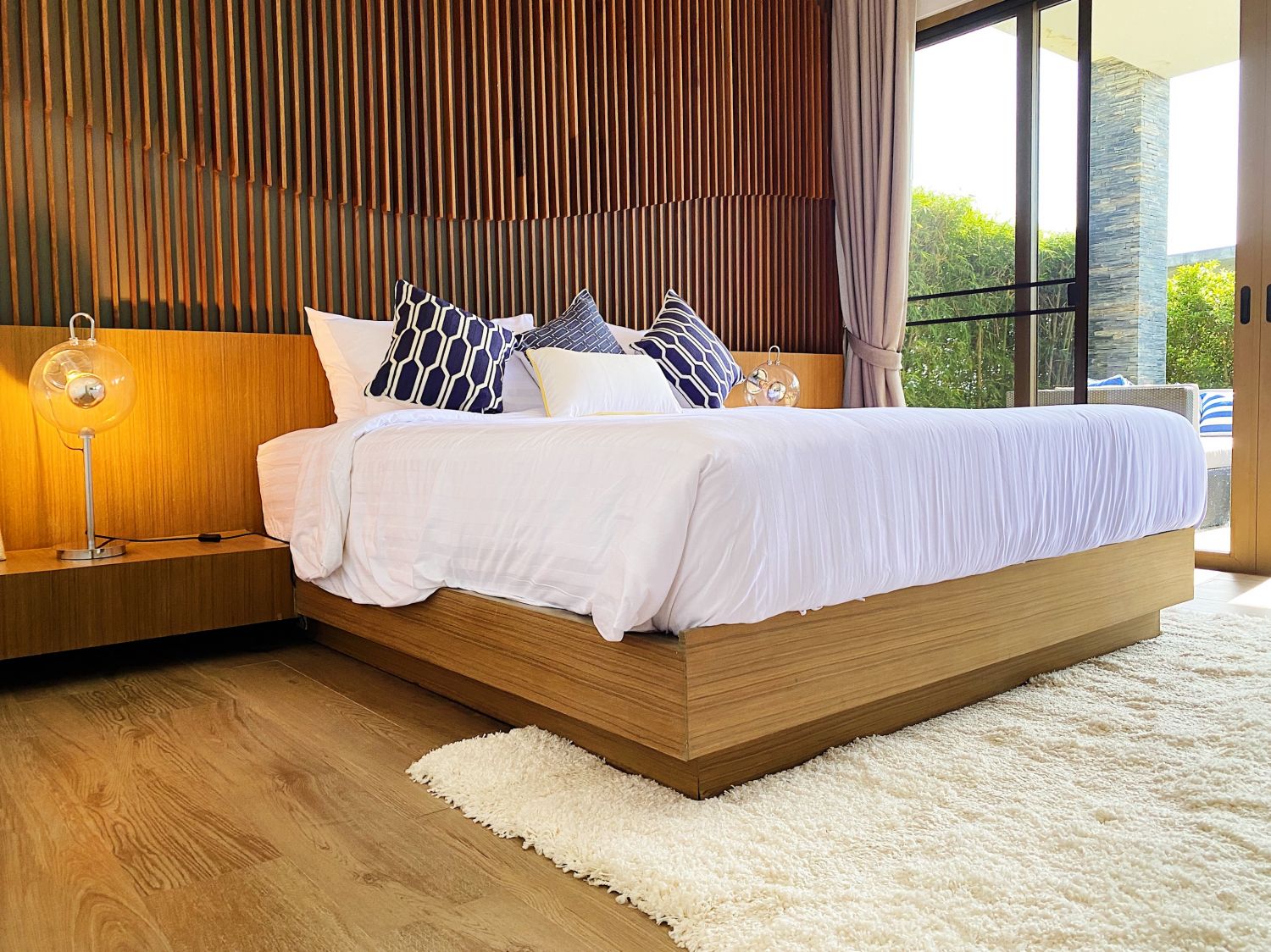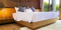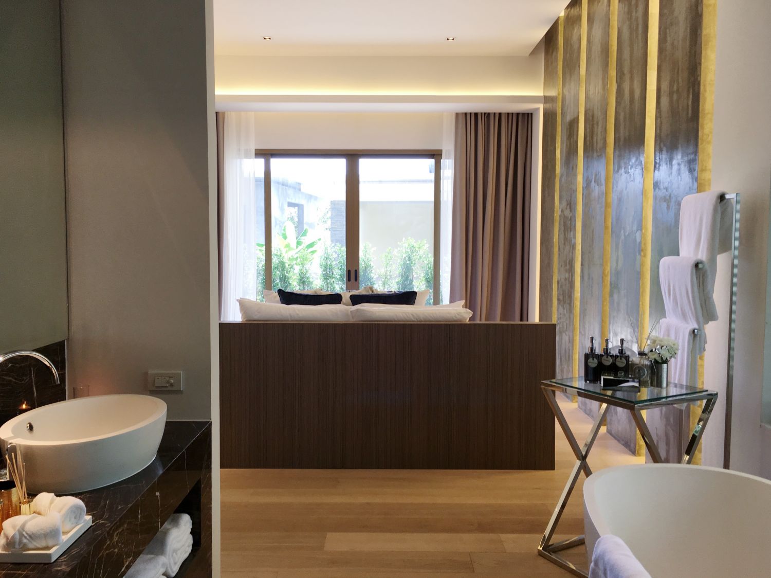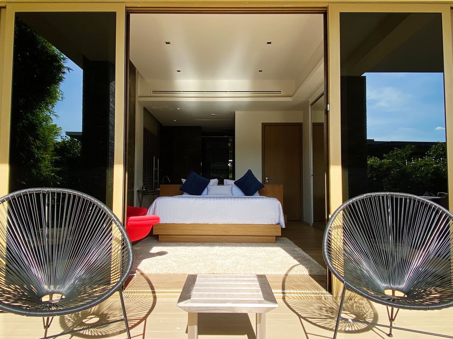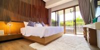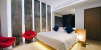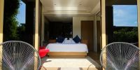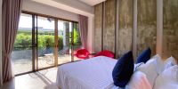 Главная спальня расположена на нижнем этаже виллы.