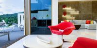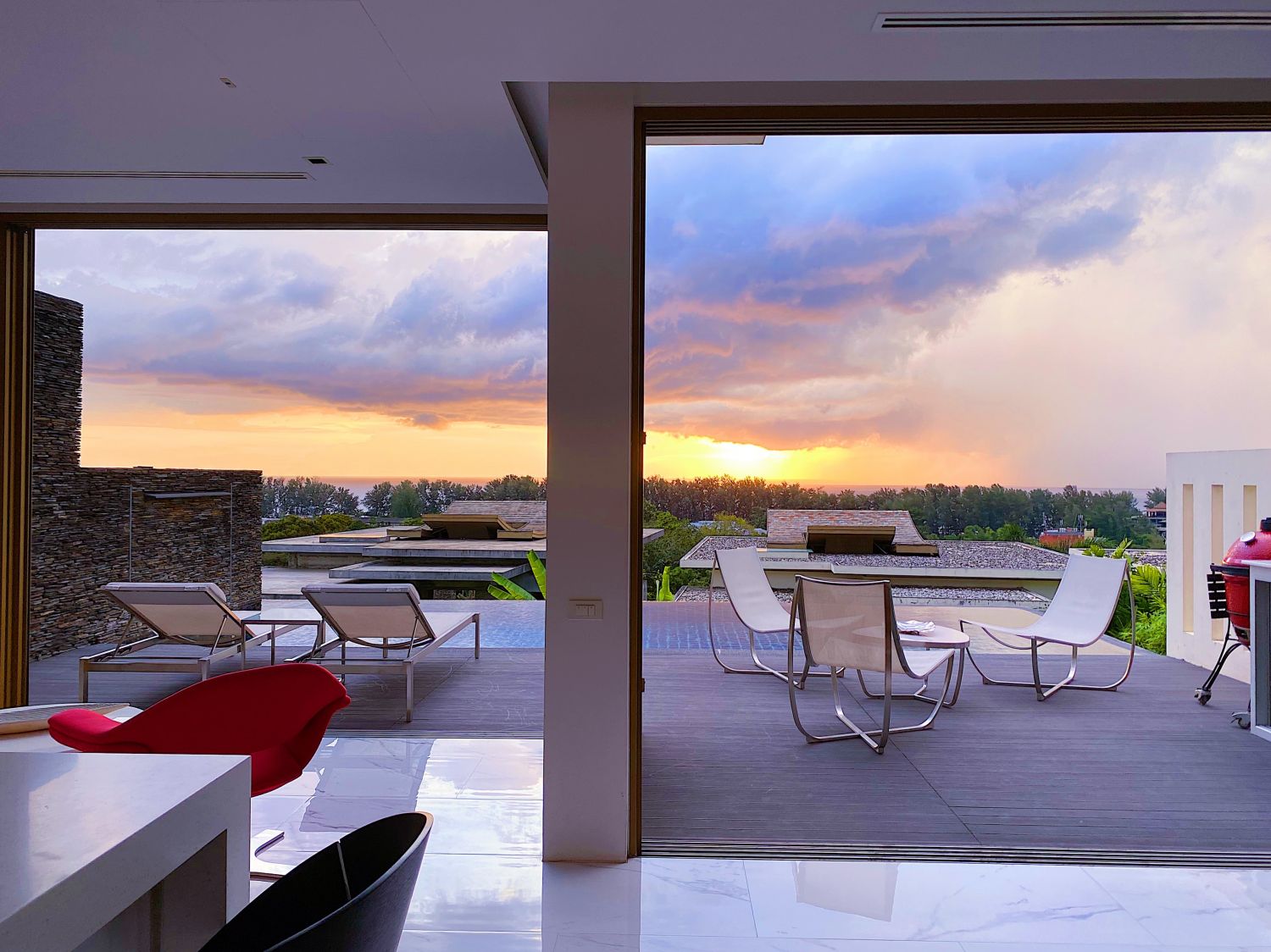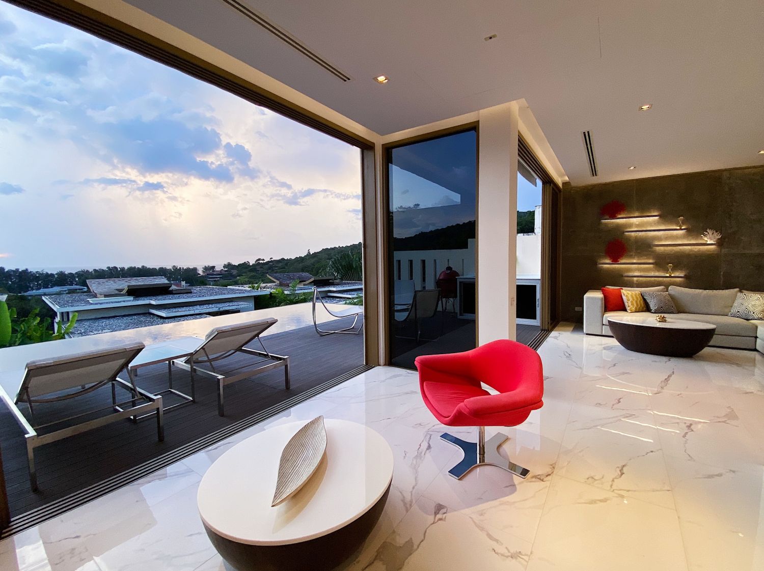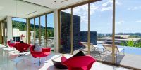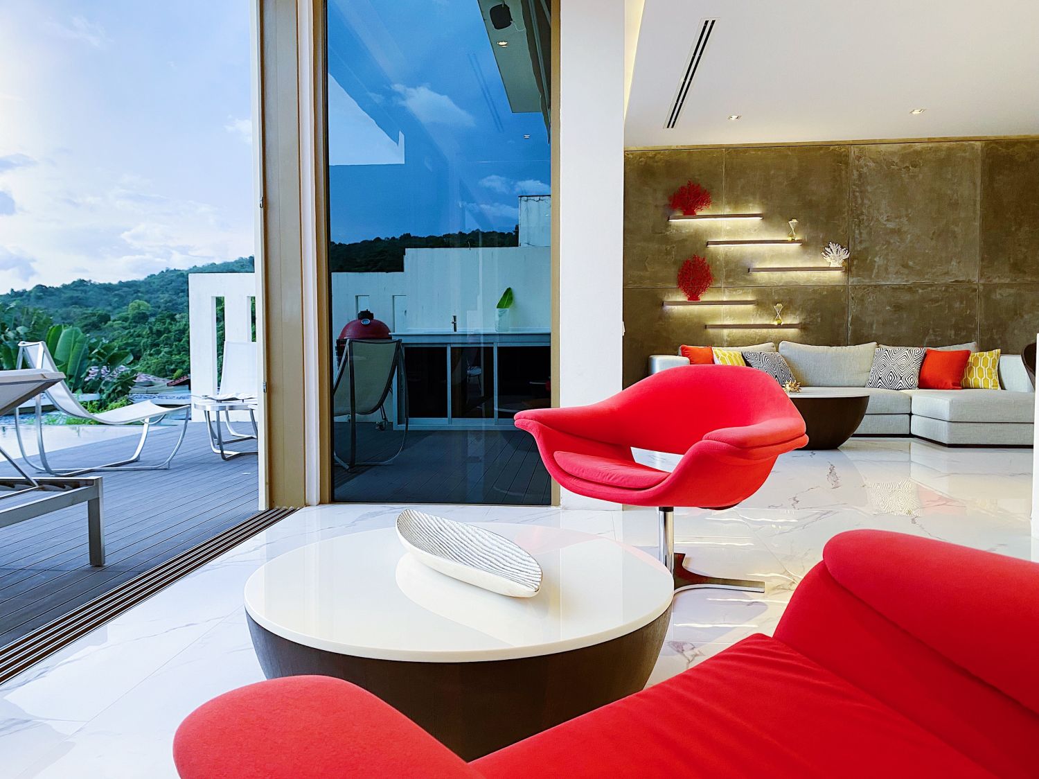Гостиная комната с выход на бассейн.