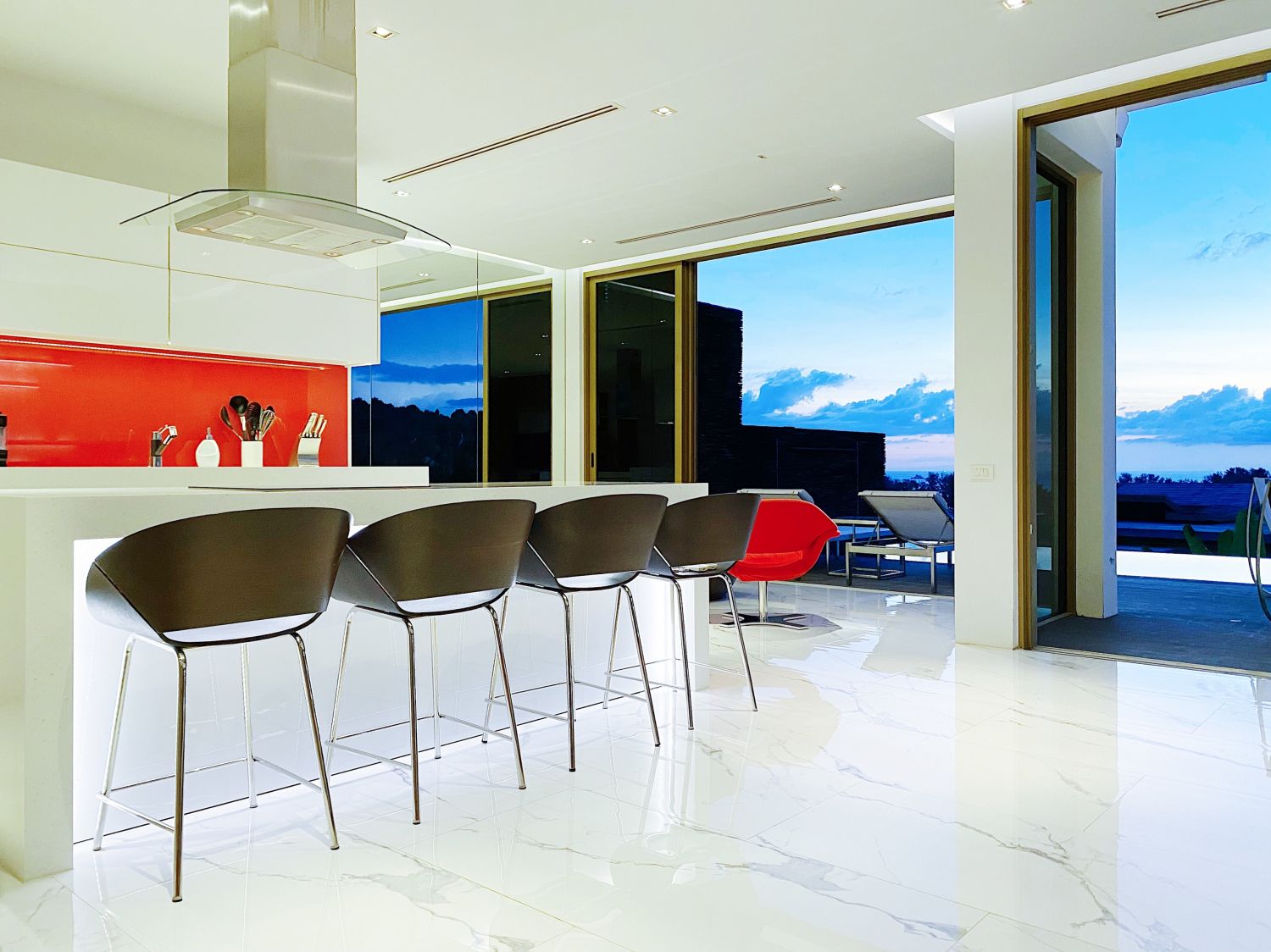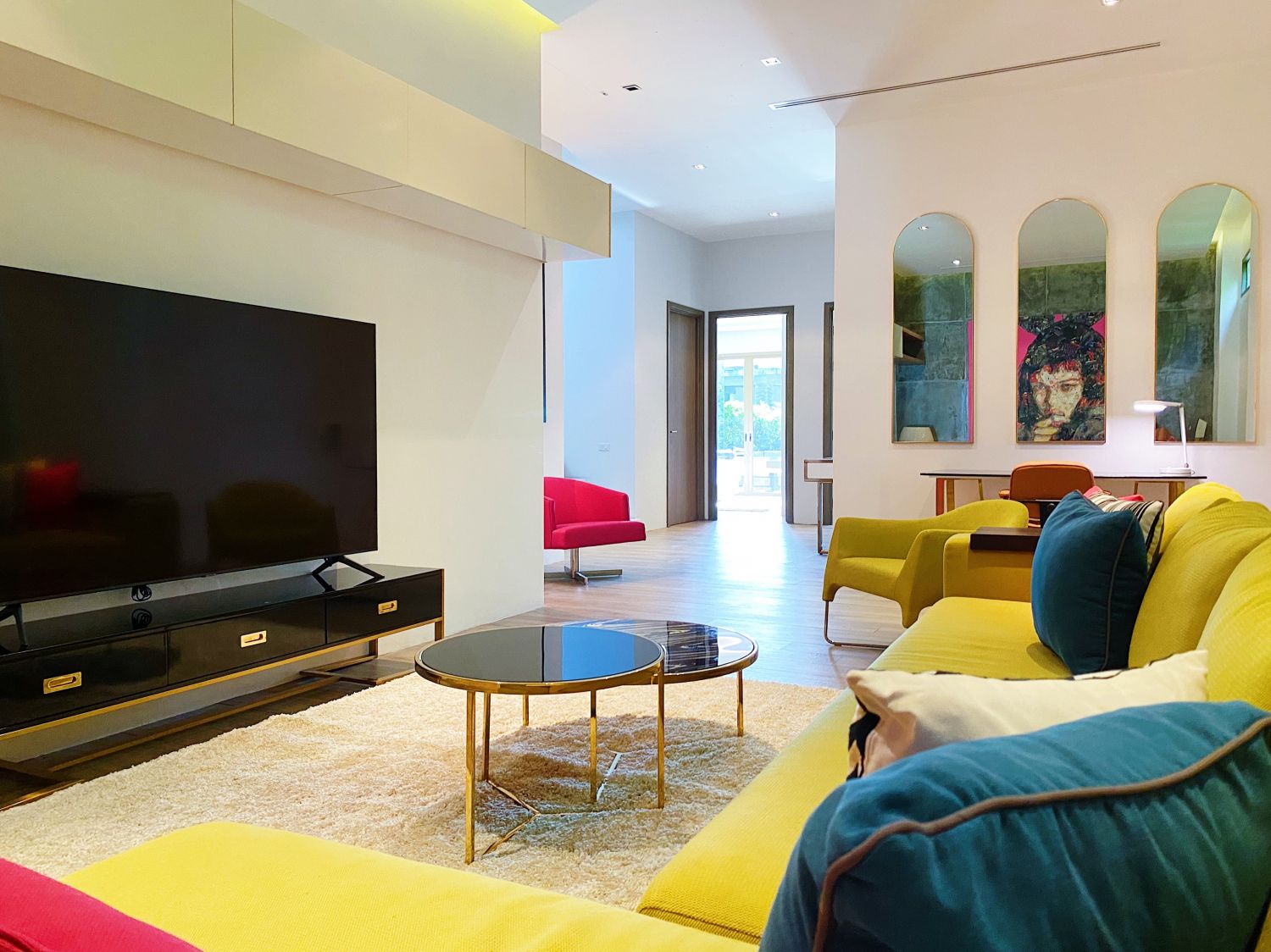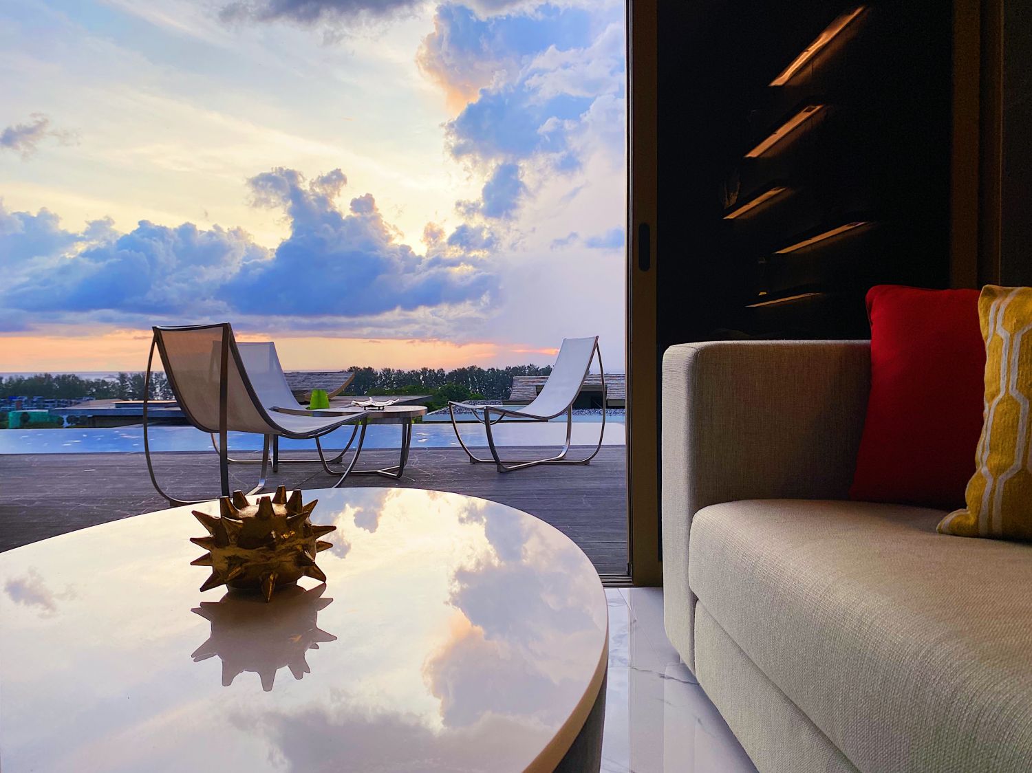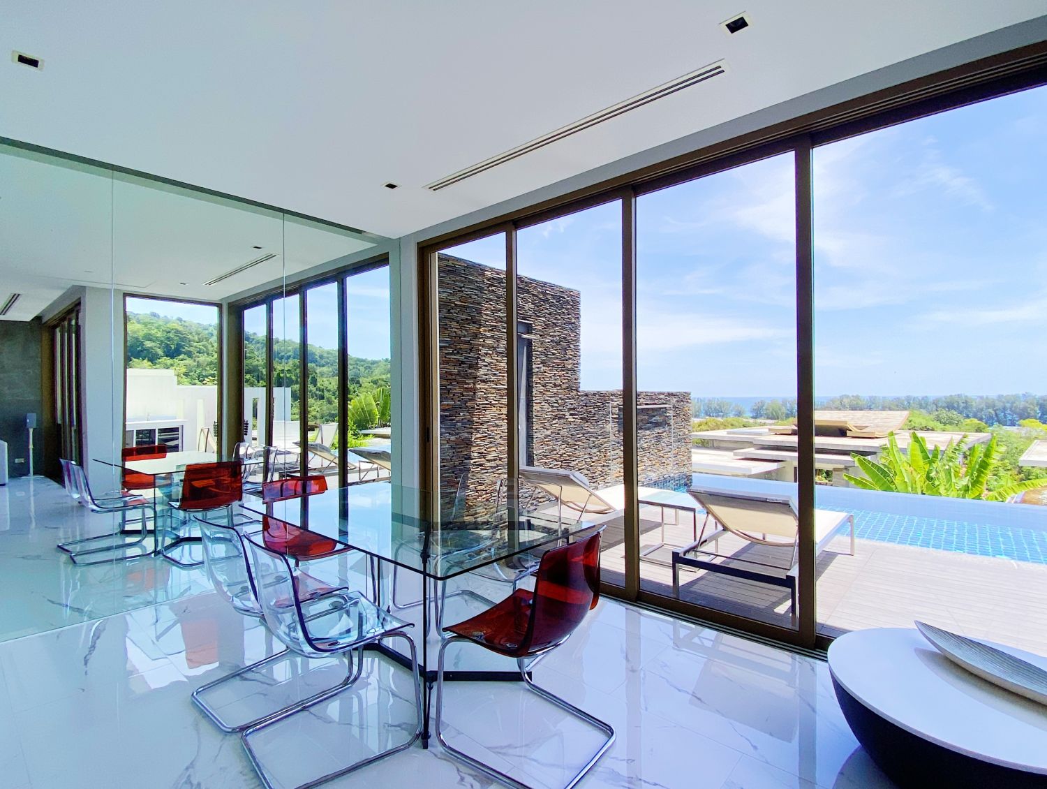 Гостиная комната с выход на бассейн.