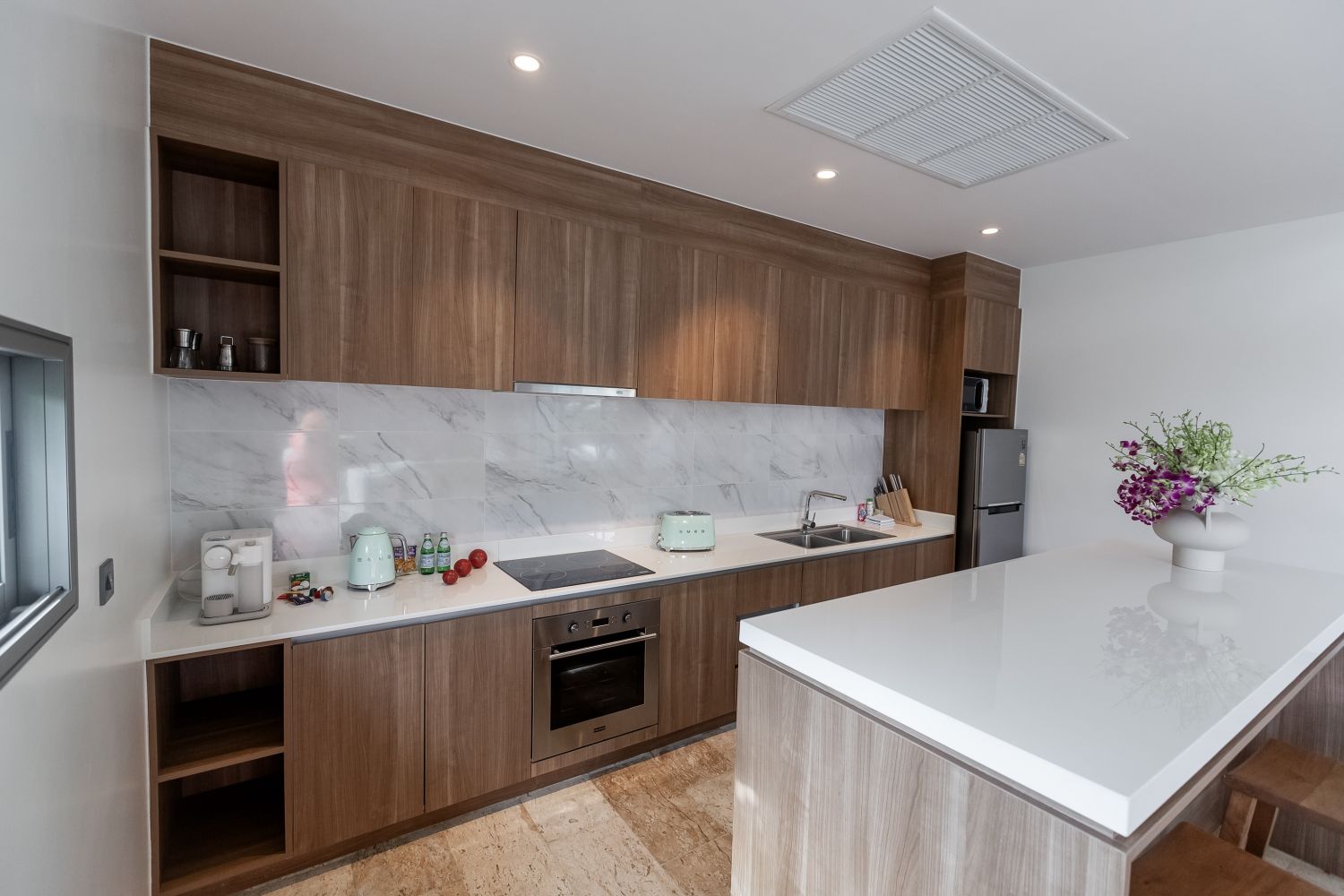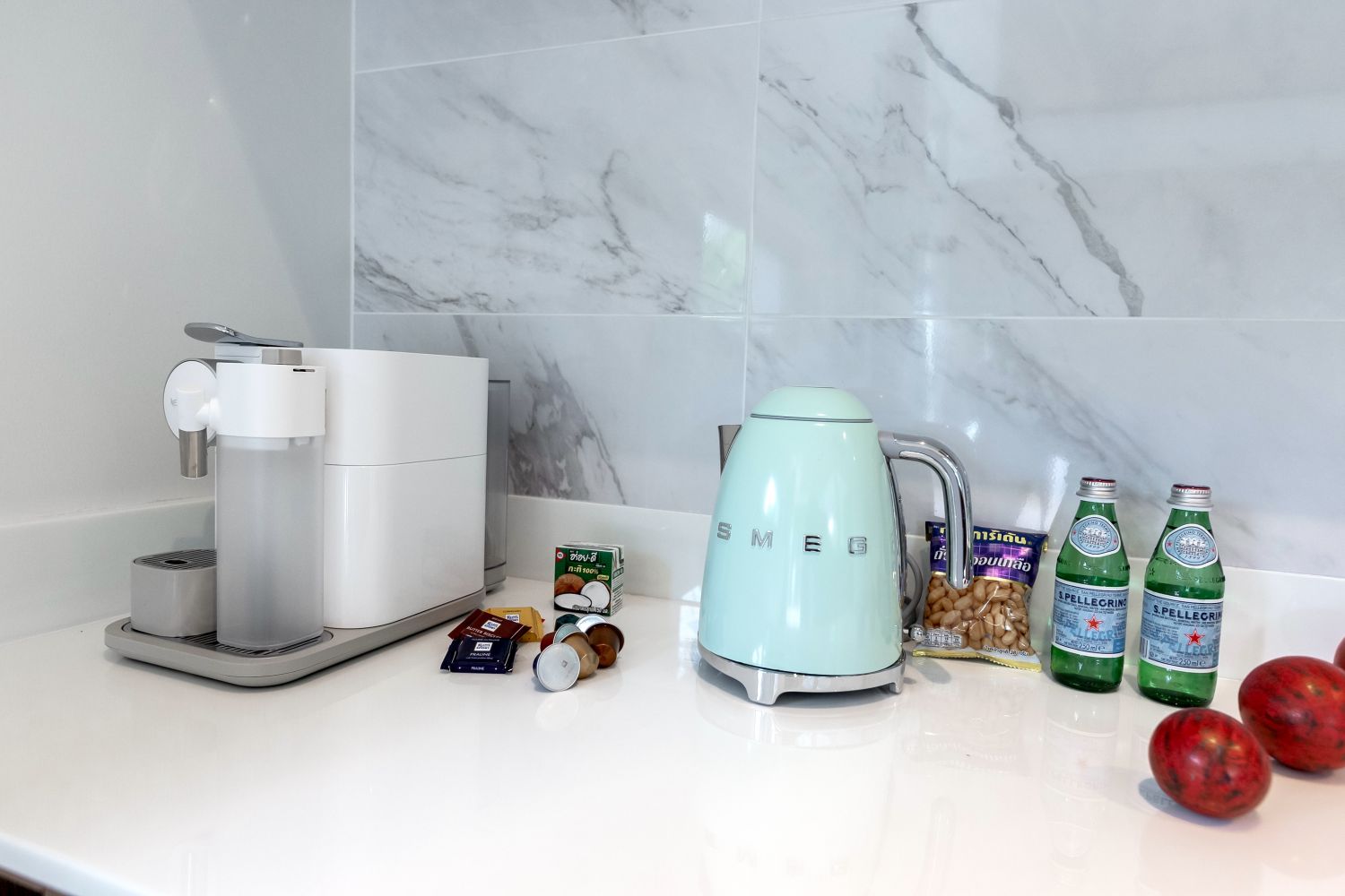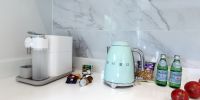 На нашей кухне приятная для глаз и рук техника Smeg и кофе-машина с капучинатором Nespresso.