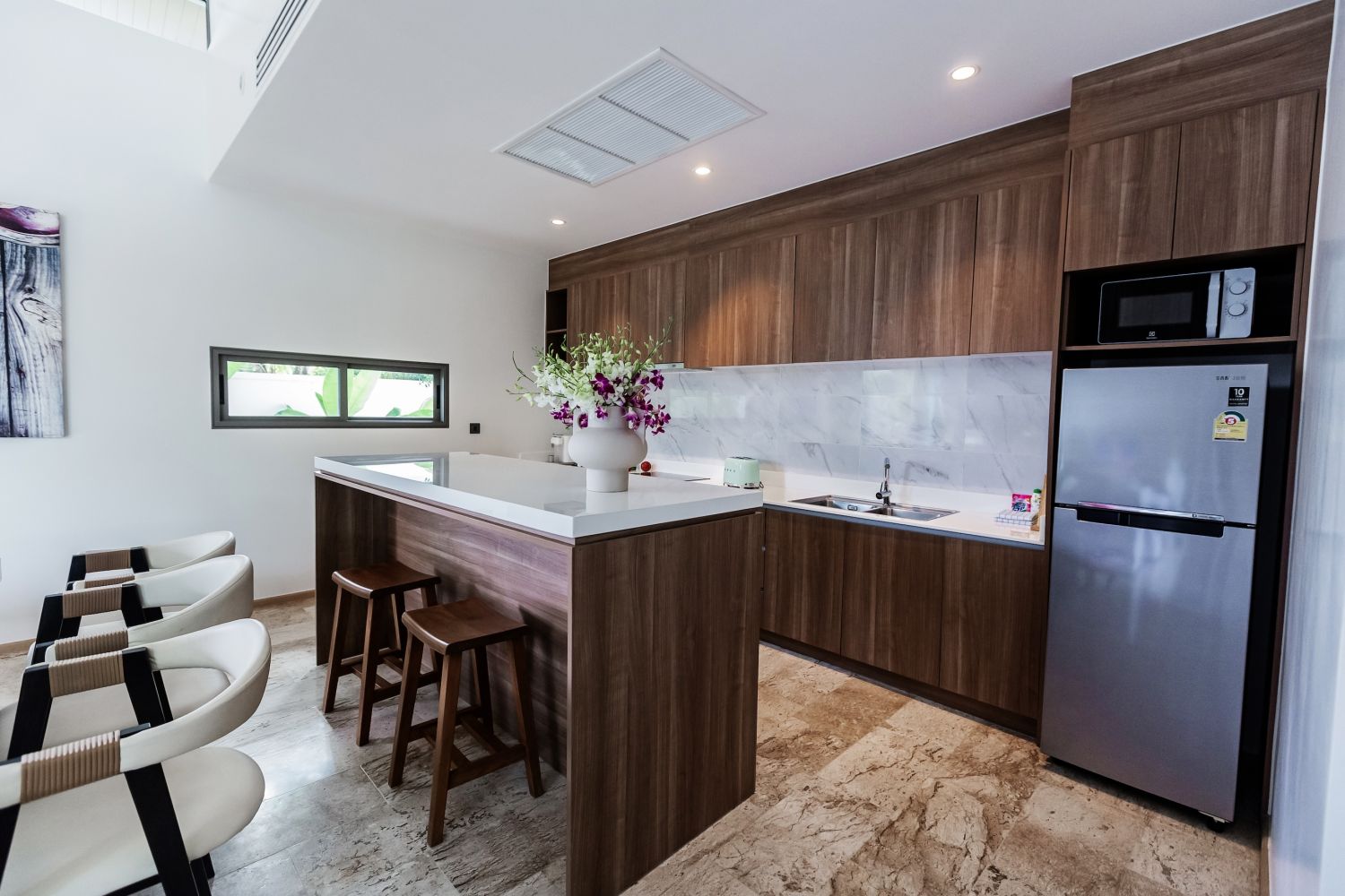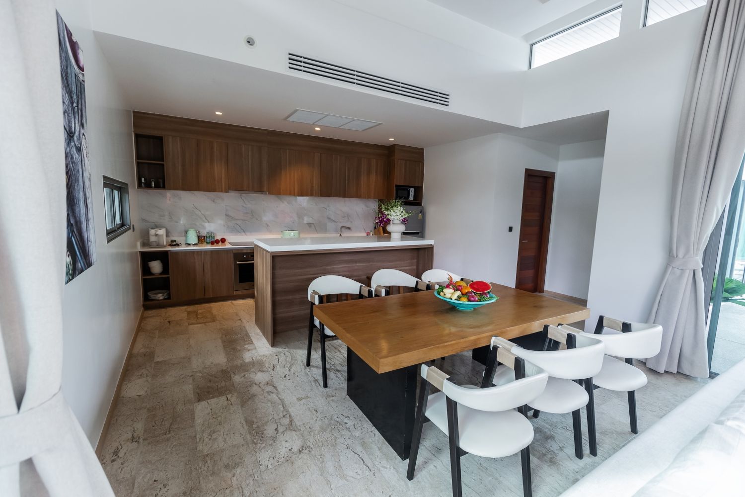 Кухня и обеденный стол расположены в едином пространстве с гостиной. На кухне вы можете готовить любимые блюда, если десятки ресторанов самых многообразных кухонь вокруг вам надоедят.