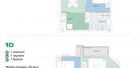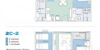 Эта уникальная концепция была воплощена в современном проекте с разными вариантами планировки жилых помещений: студии, одно- и двухкомнатные квартиры.