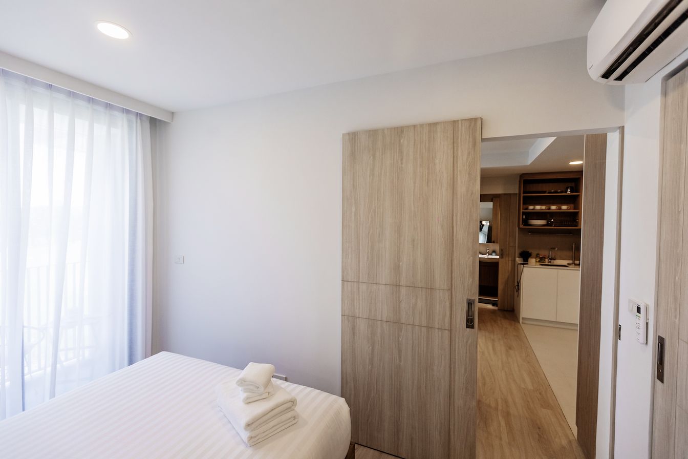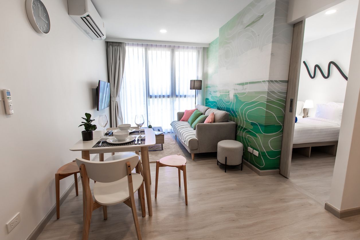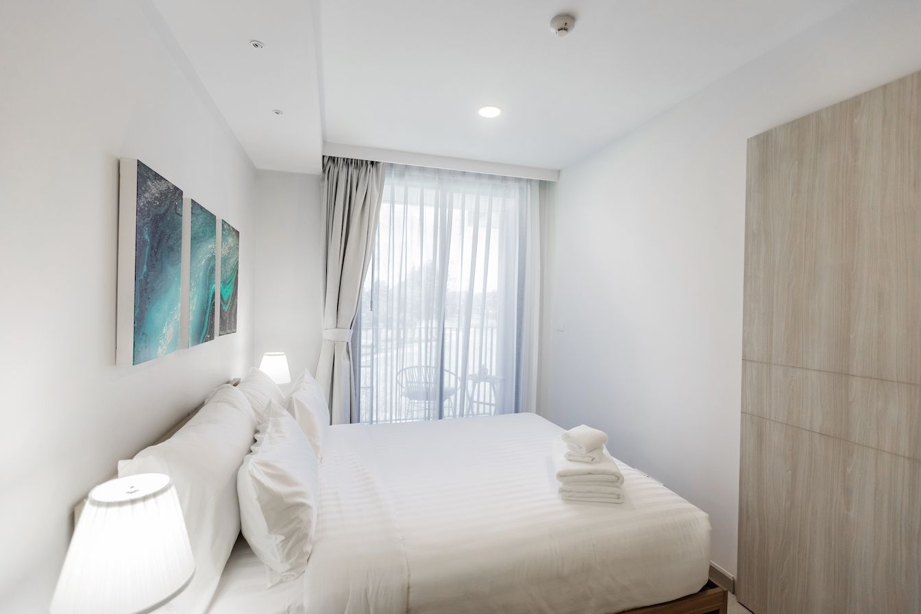 Небольшая квартира c двумя спальнями и гостиной в центре самого роскошного курортного города Лагуна и в пешей доступности к пляжу и всей инфрастуктуре курорта: кафе, рестораны, йога, магазины.