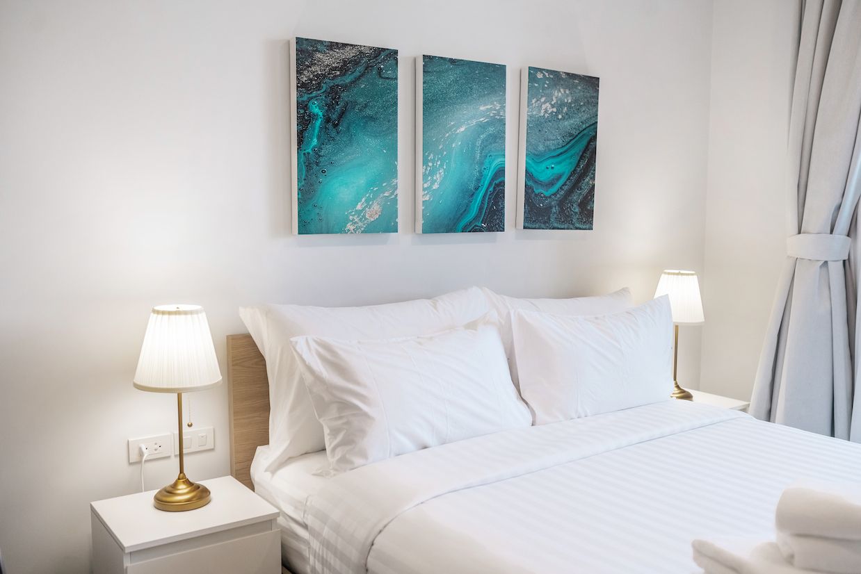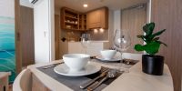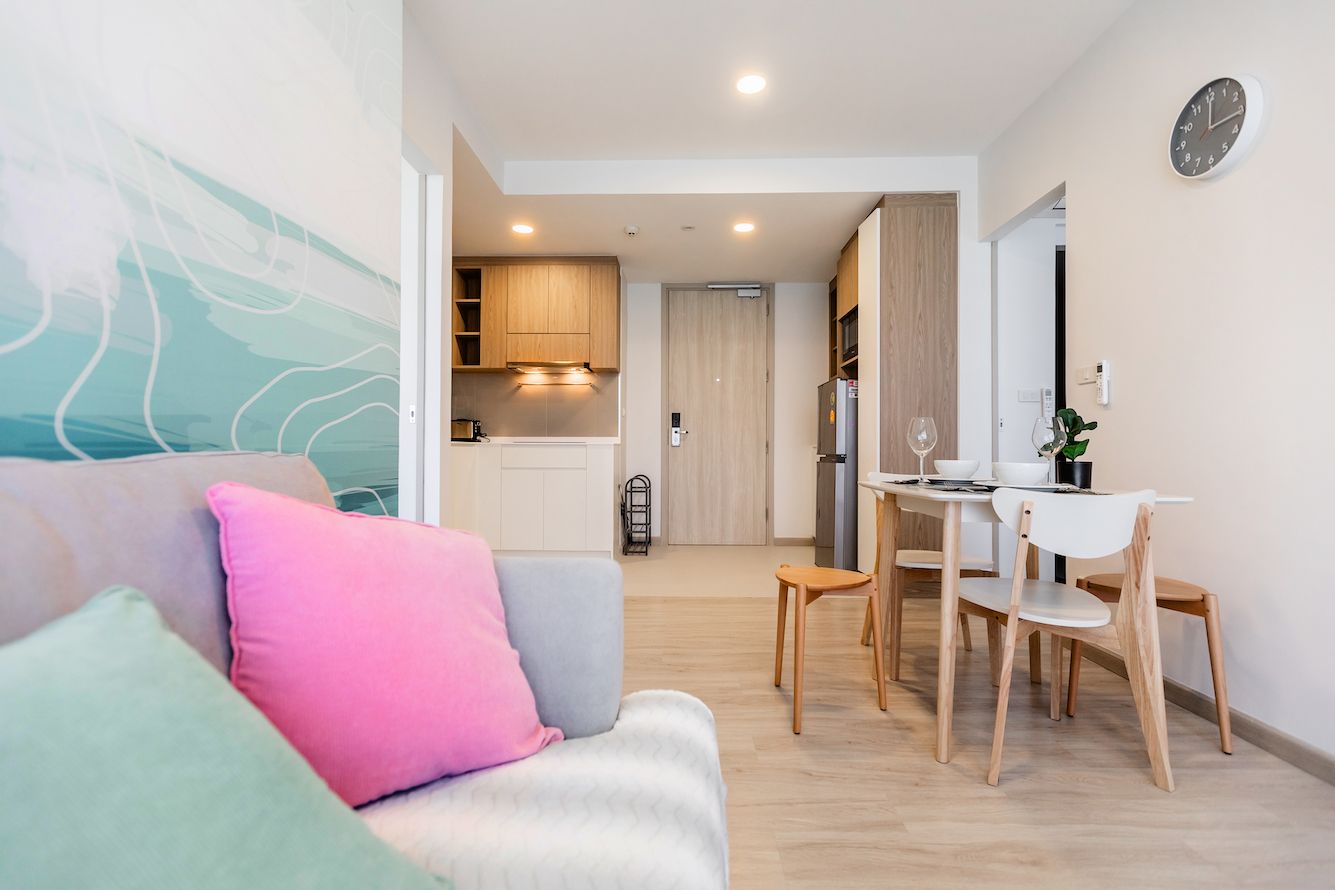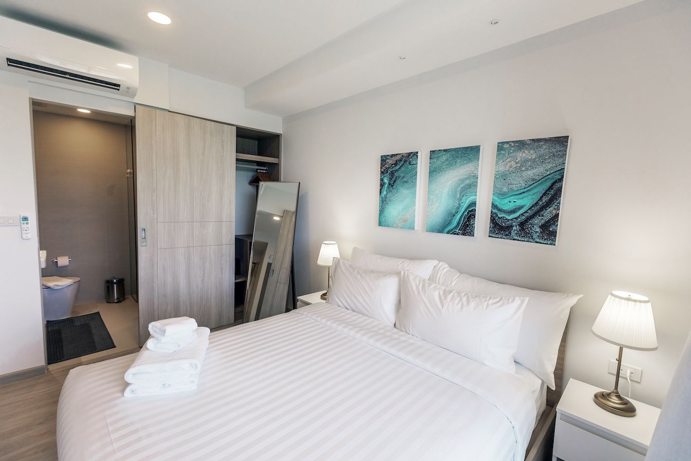 Небольшая квартира c двумя спальнями и гостиной в центре самого роскошного курортного города Лагуна и в пешей доступности к пляжу и всей инфрастуктуре курорта: кафе, рестораны, йога, магазины.