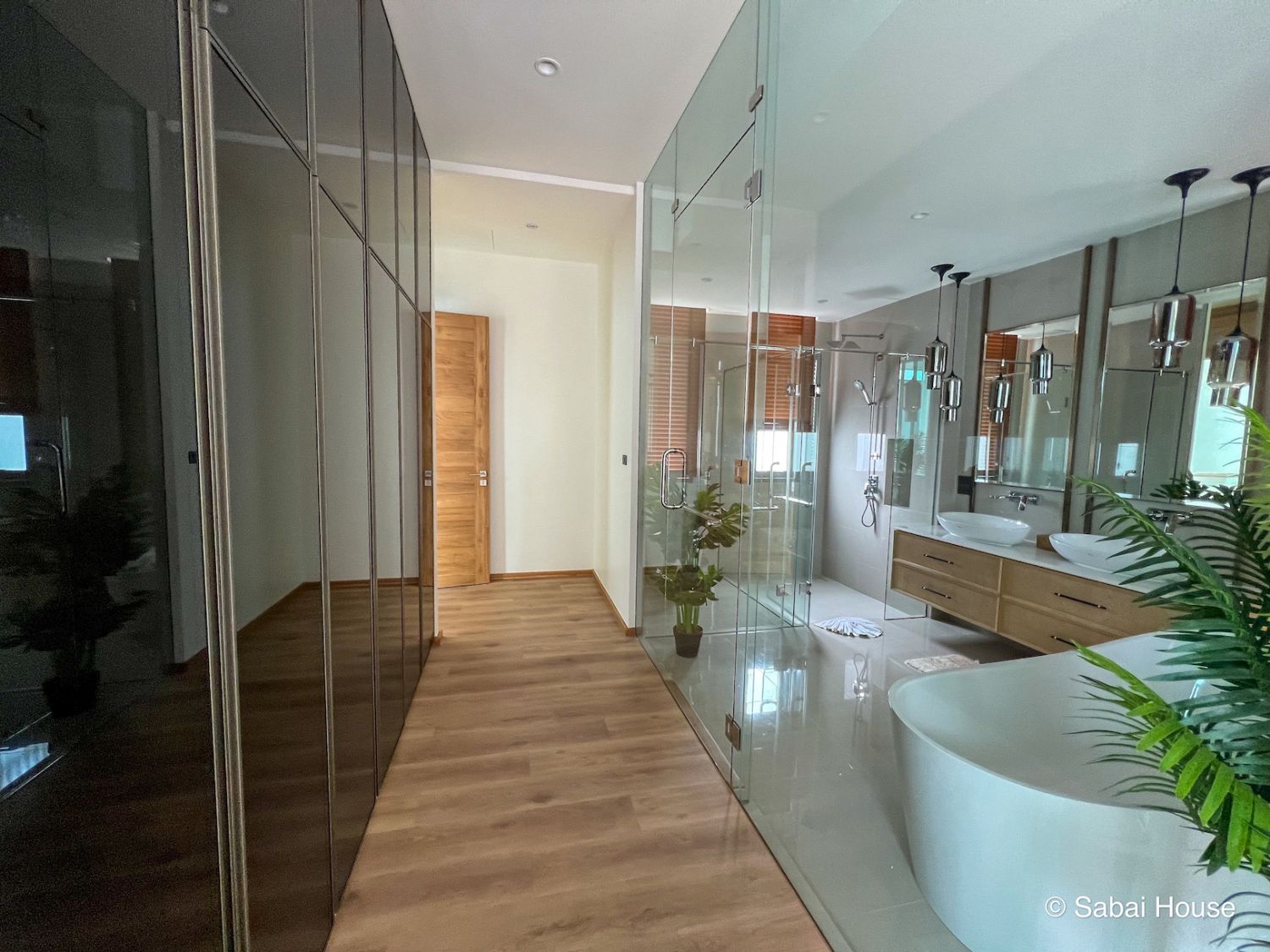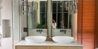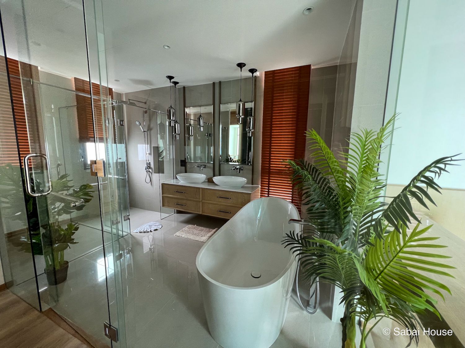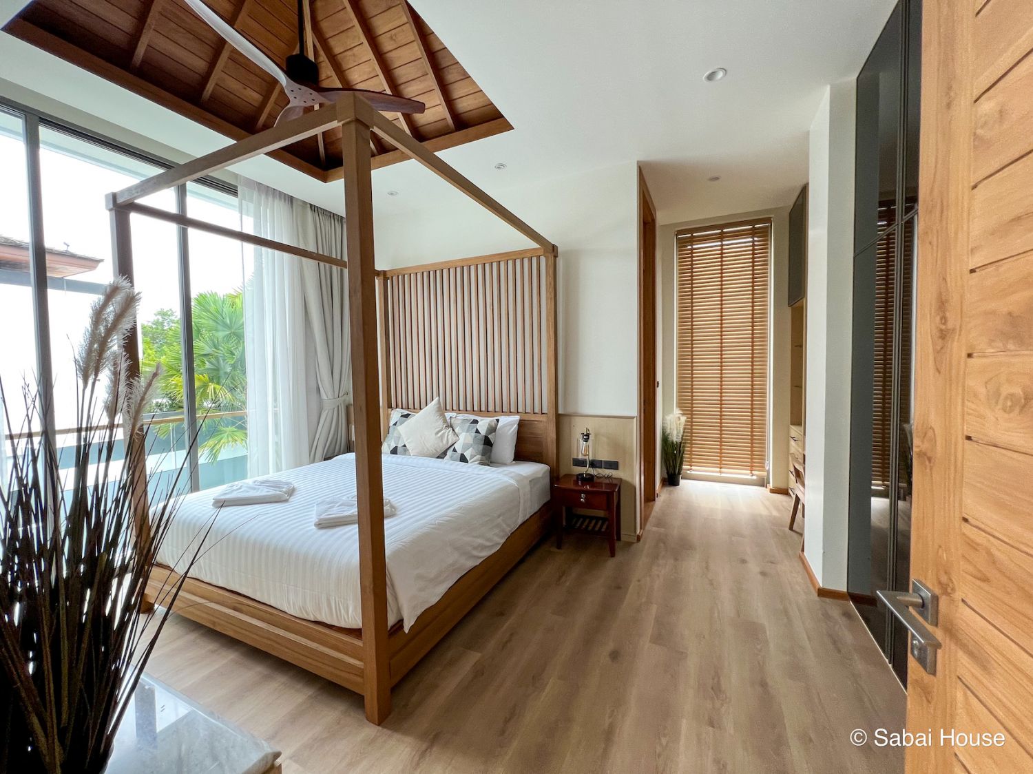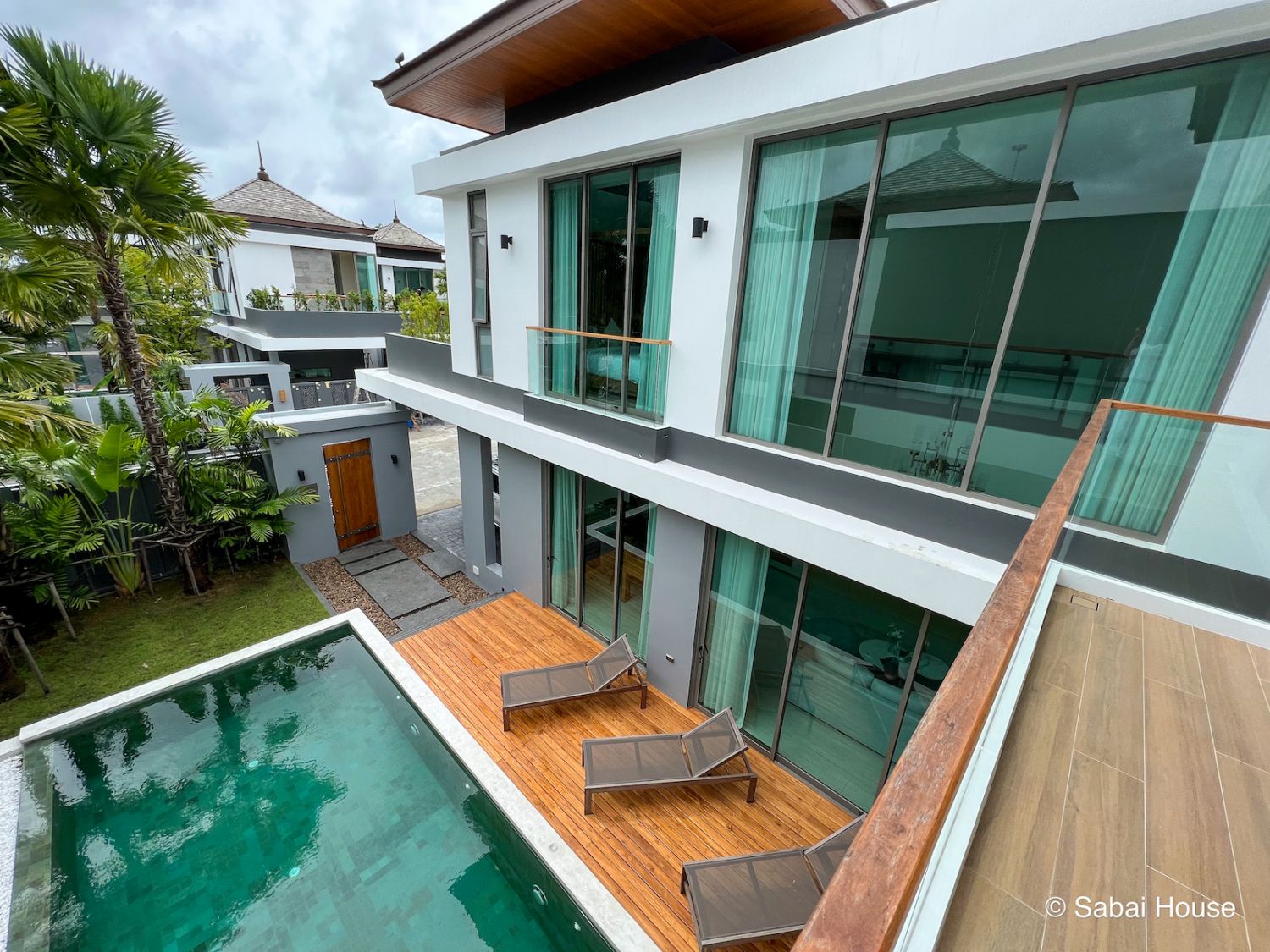 Вилла выполнена из премиальных материалов: дерево, метал, стекло.