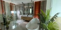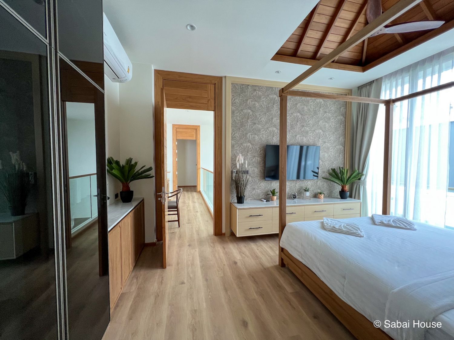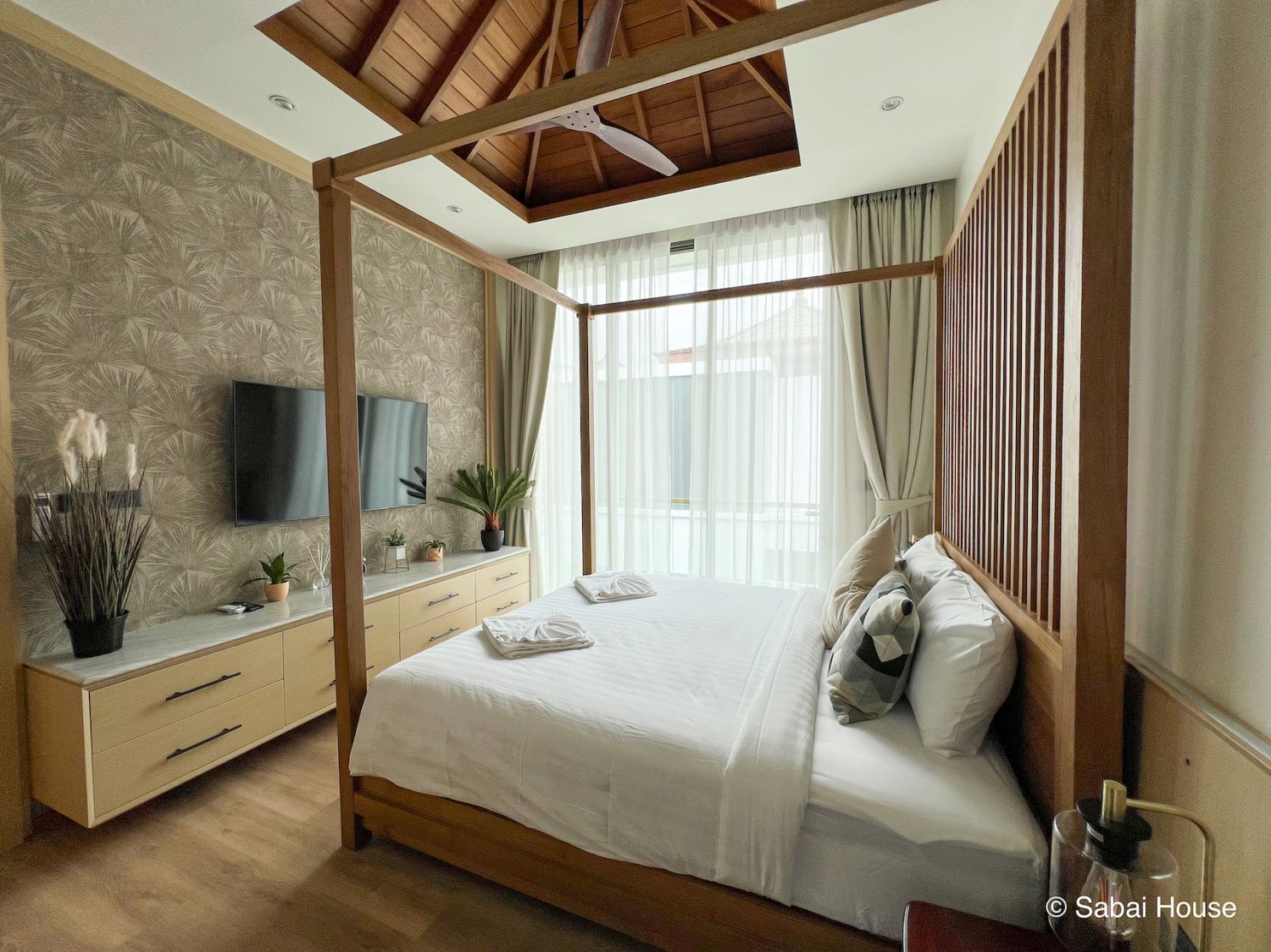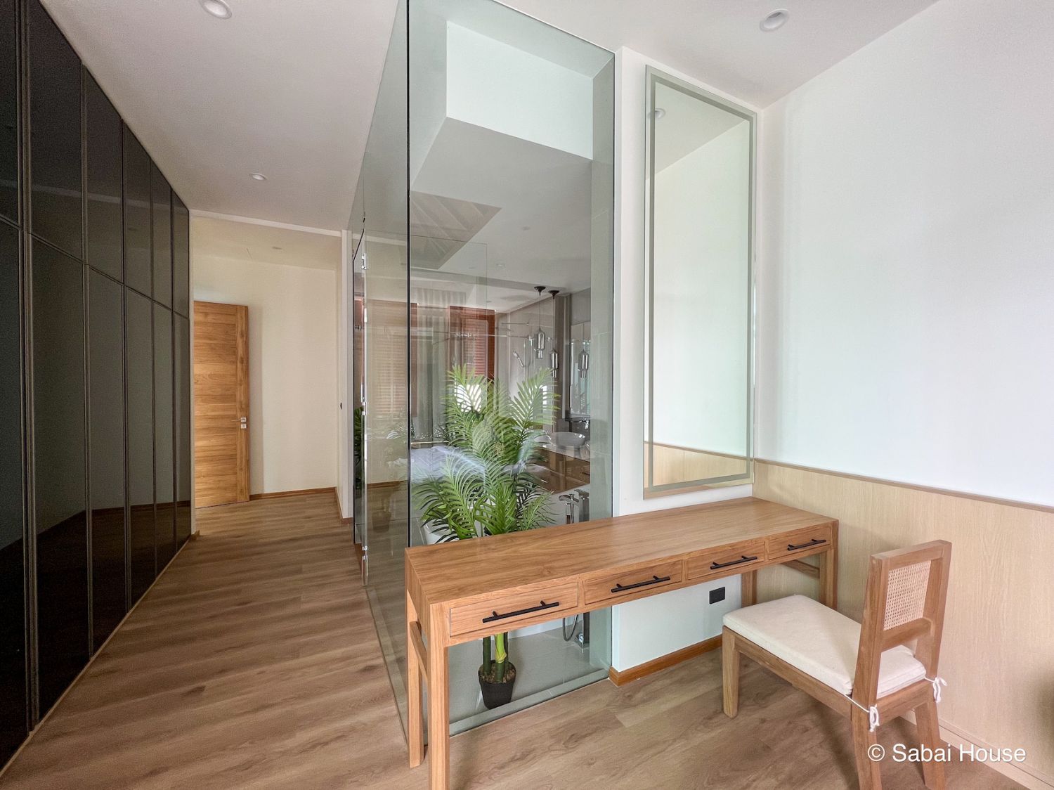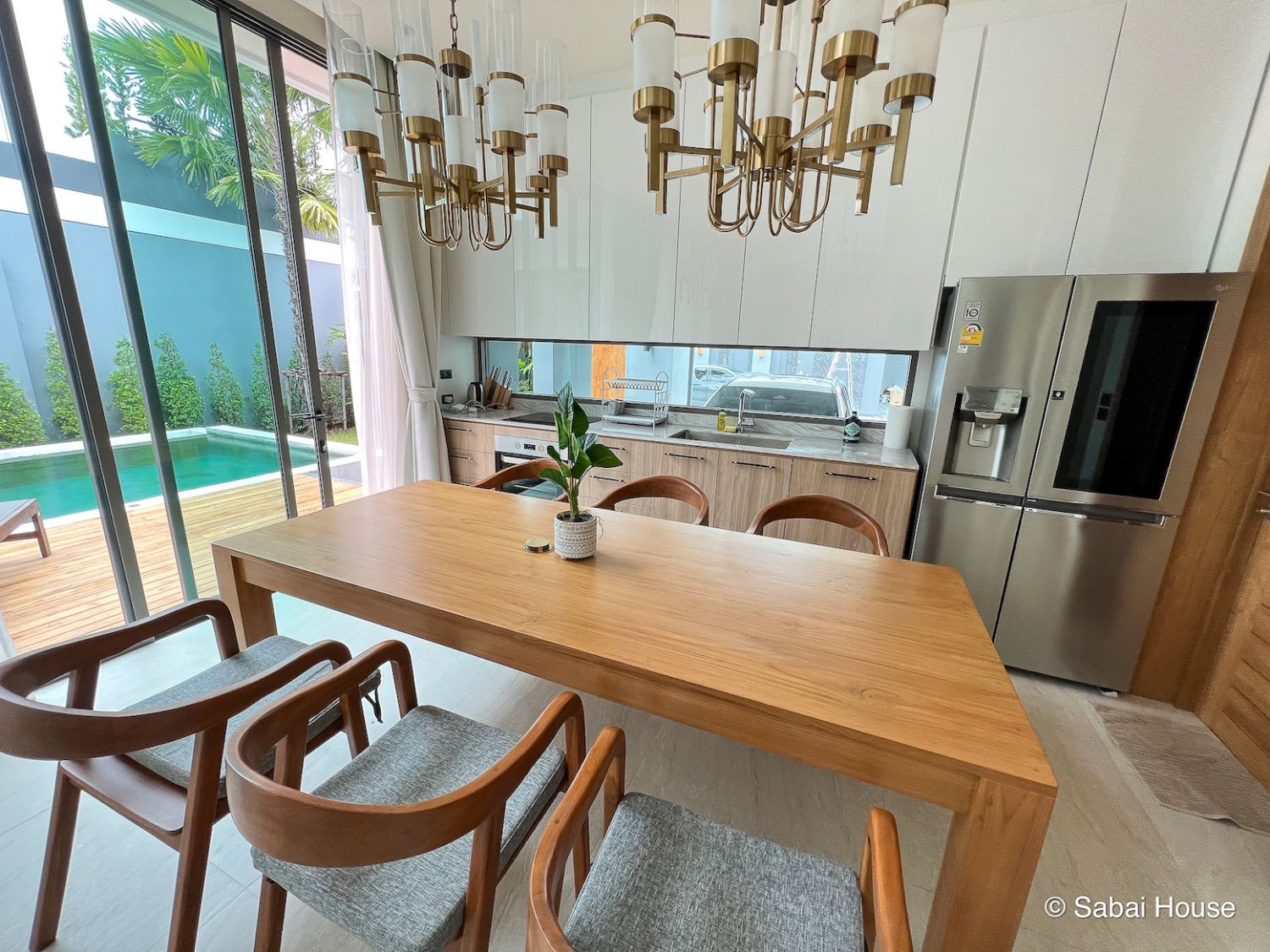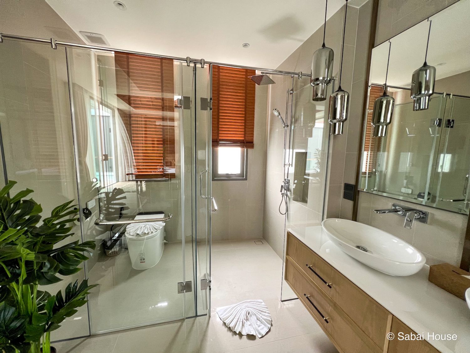 Вилла выполнена из премиальных материалов: дерево, метал, стекло.