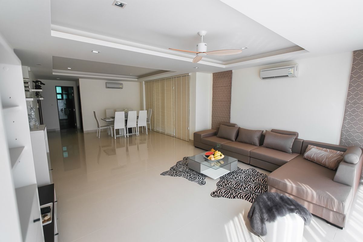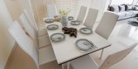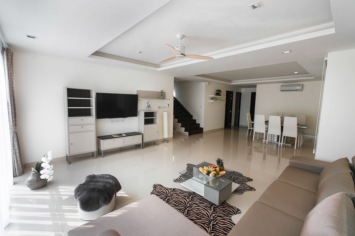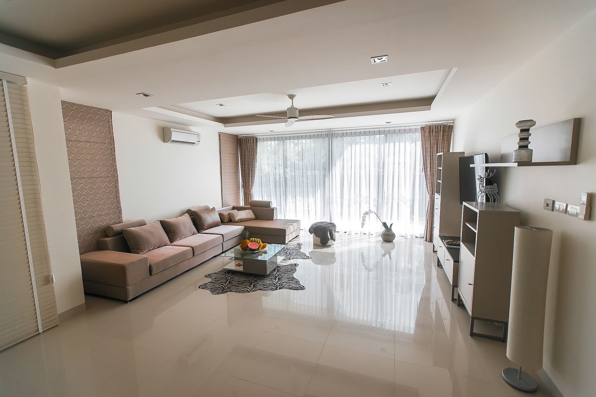 Заходя на виллу вы сразу попадаете в гостиную, просторную, воздушную и светлую. Именно тут вся ваша большая компания сможет разместится перед телевизором или за обеденным столом на 8 персон.