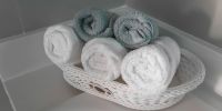 1 раз в неделю убирают. Моют кухню, полы, санузлы. Если нужно меняют пастель. Грязное забирают с собой. Стиркой не занимаются))