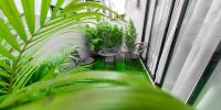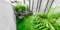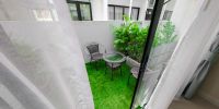 Небольшой задний двор с выходом с кухни и гостиной. Тут установлена стиральная машина, сушилка для белья, столик для перекура.